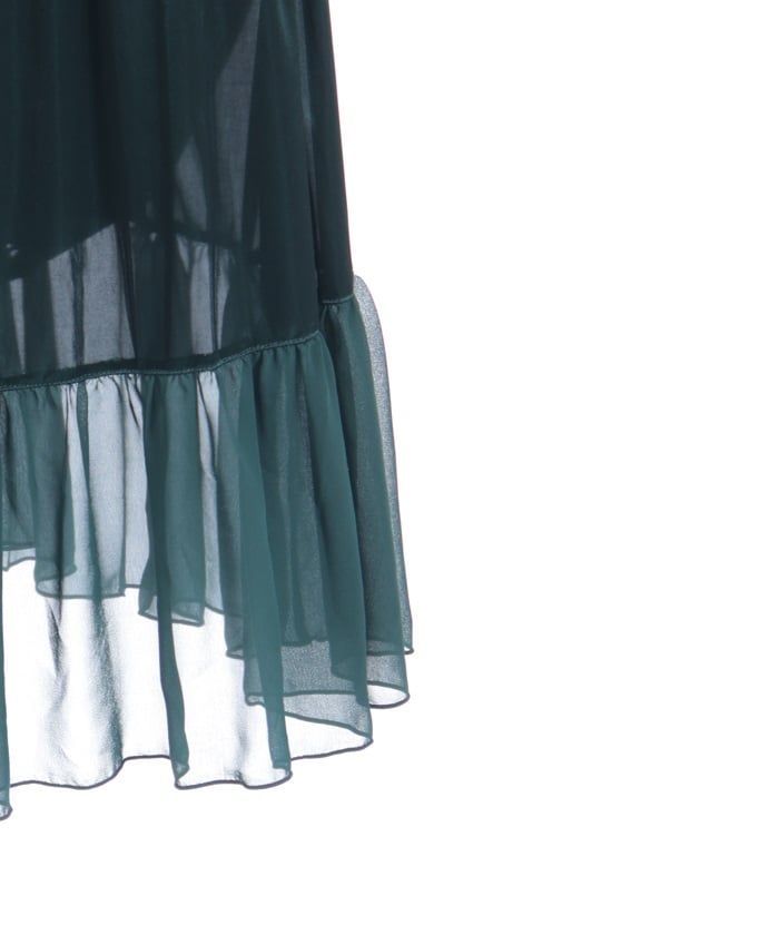 Chiffon frills peek out from the hem, making it a focal point of any outfit.