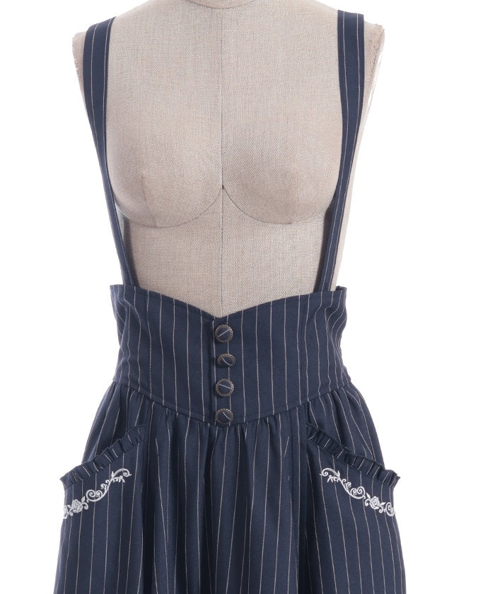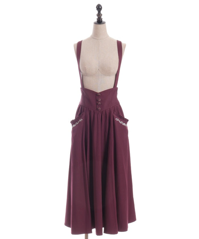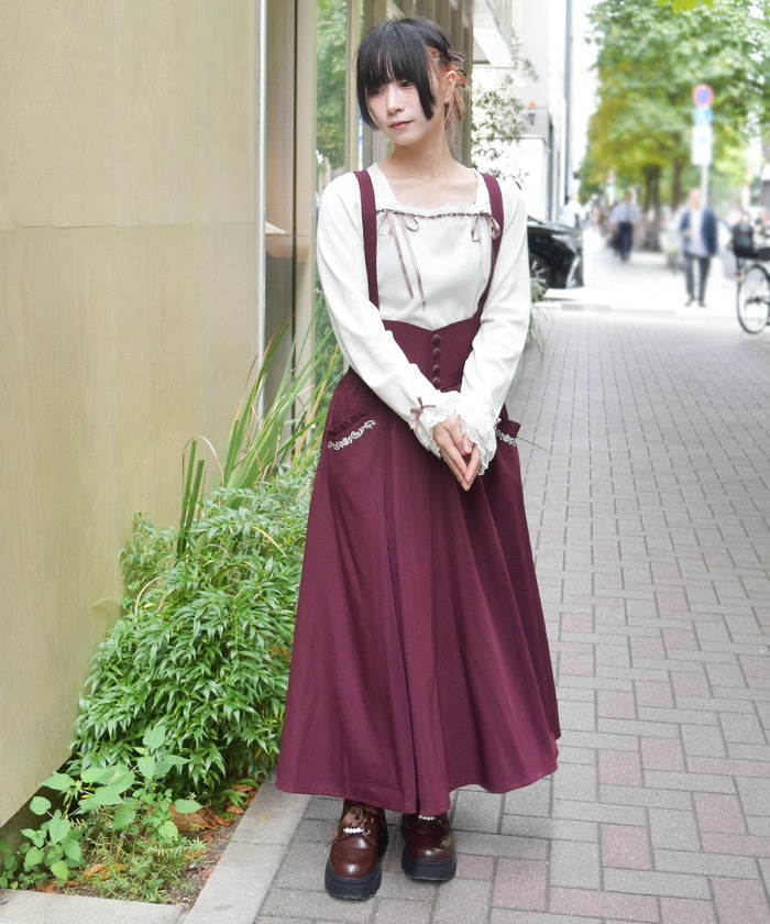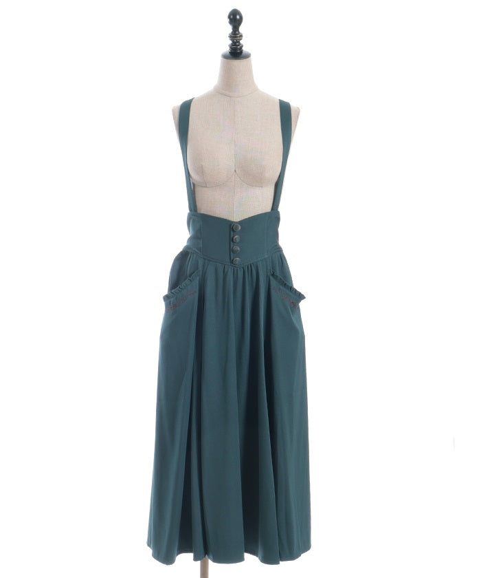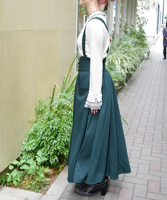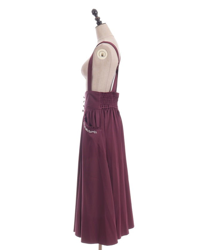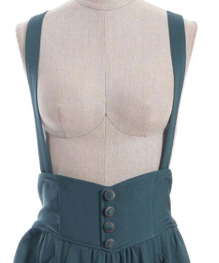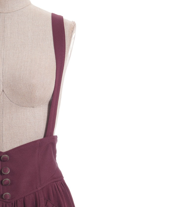 The suspenders are adjustable, allowing you to create your own unique look. While full of classical vibes when worn, the striking details are also its charm. The skirt line sways with every movement, creating an elegant impression.
