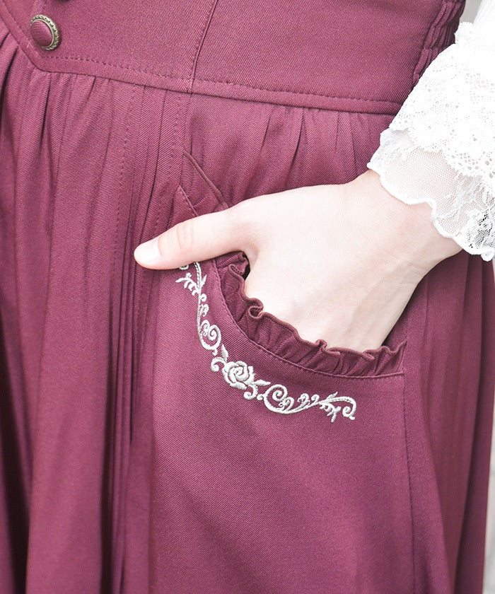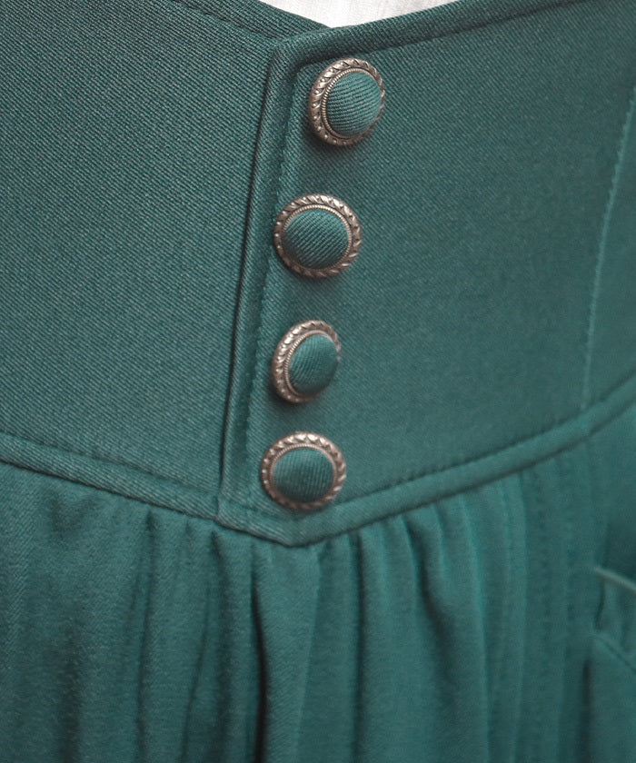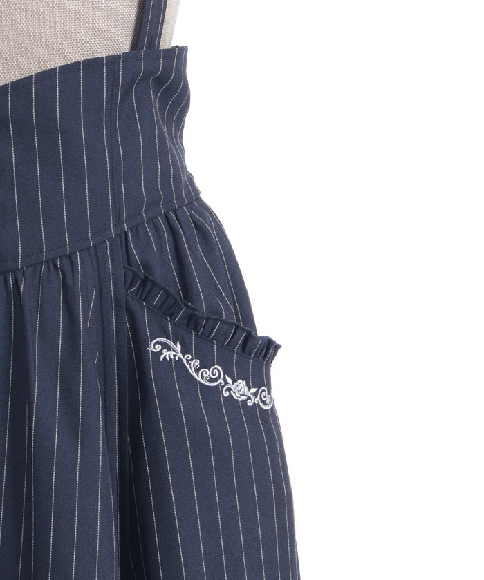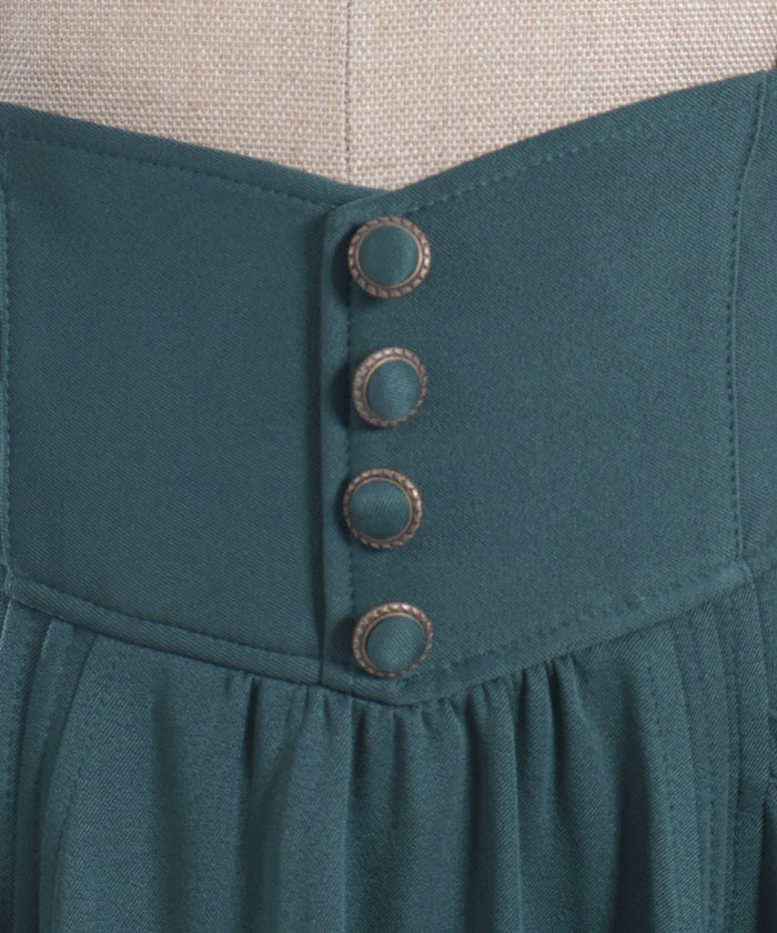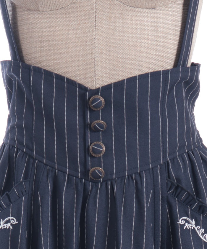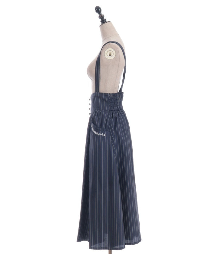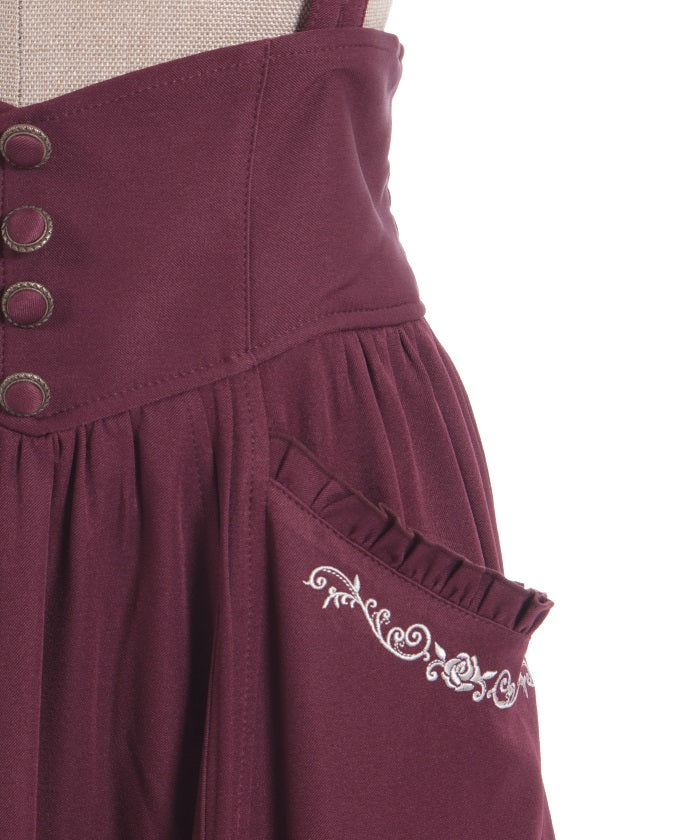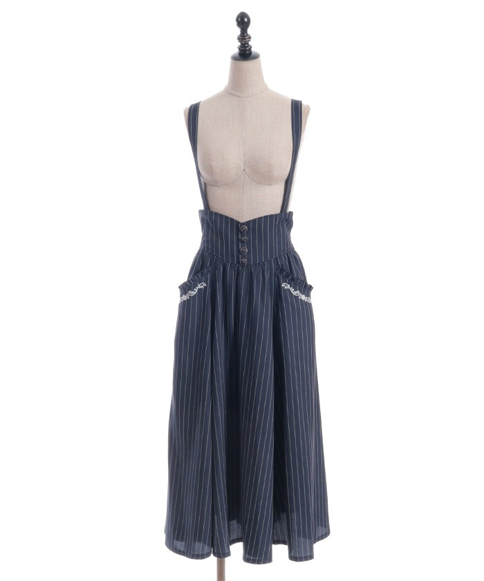 The suspenders are adjustable, allowing you to create your own unique look. While full of classical vibes when worn, the striking details are also its charm. The skirt line sways with every movement, creating an elegant impression.