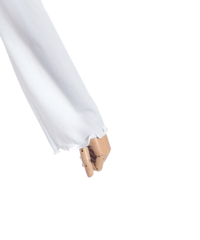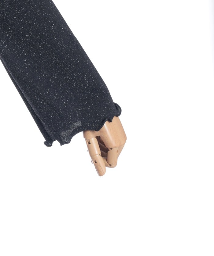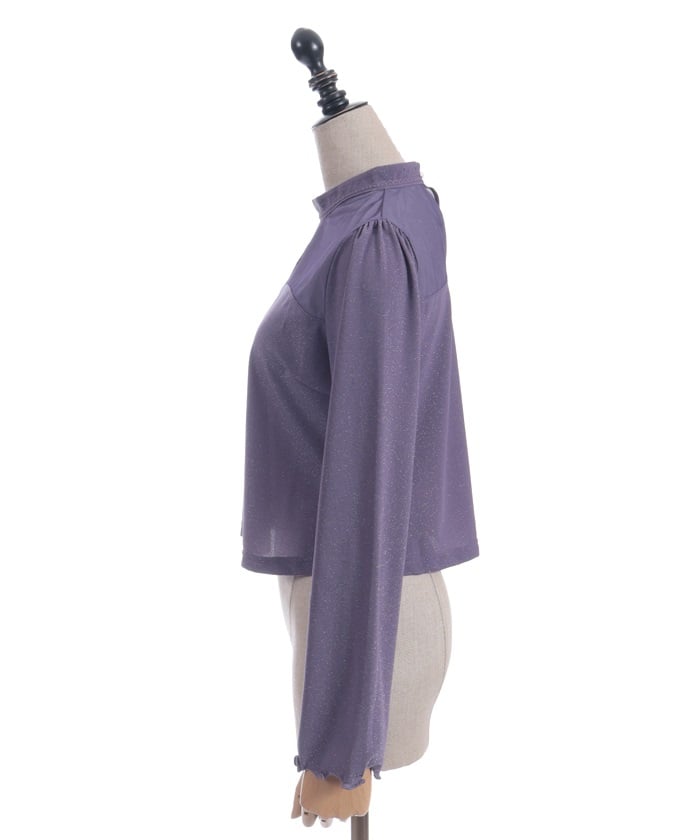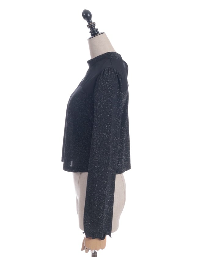 A cut-and-sewn top made with a sparkling, glittery fabric.
