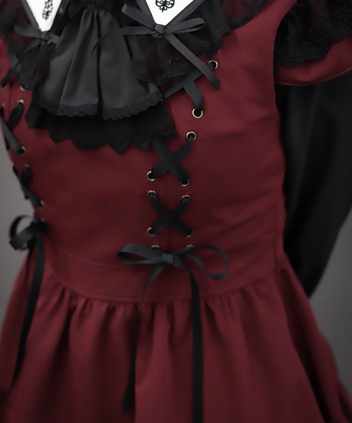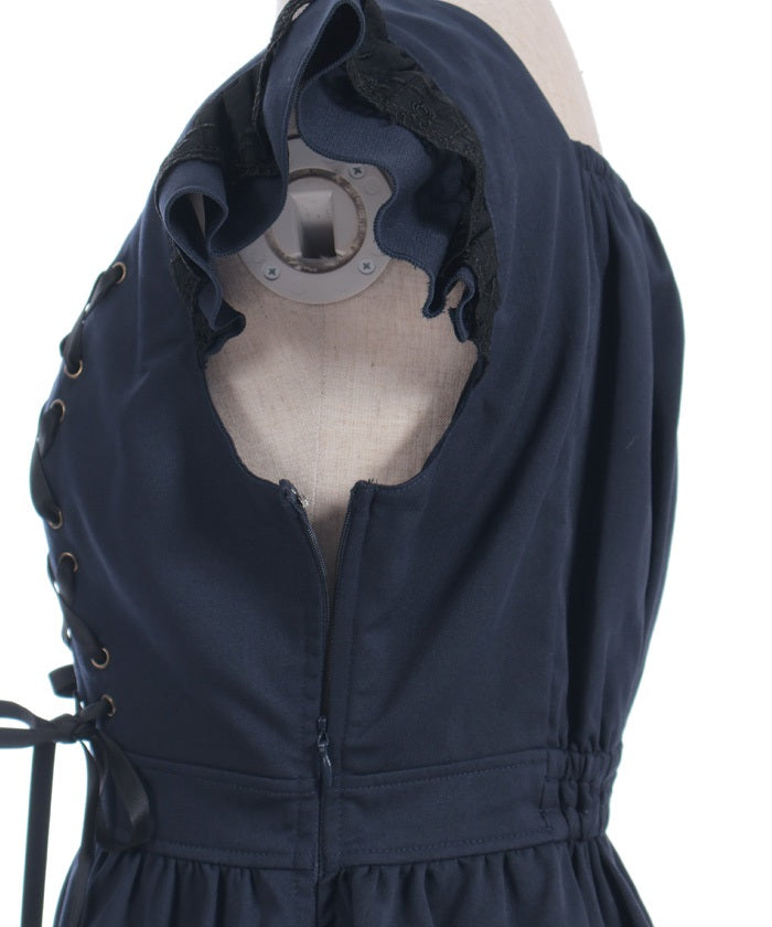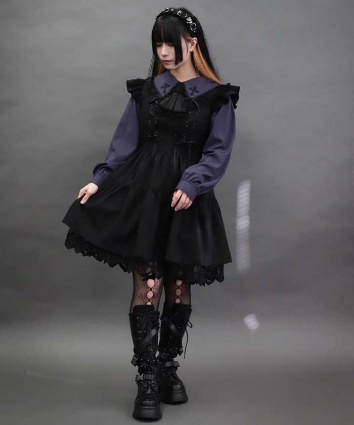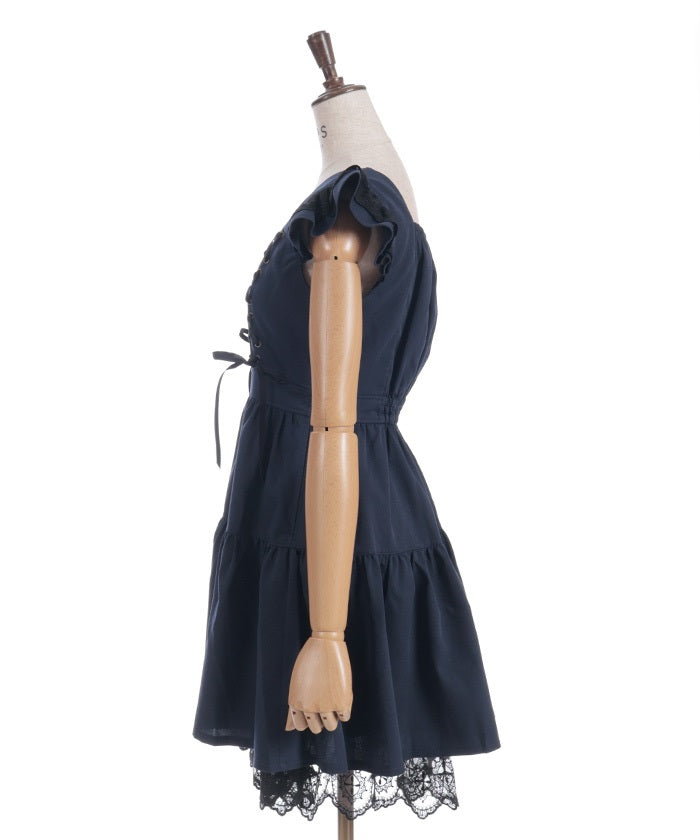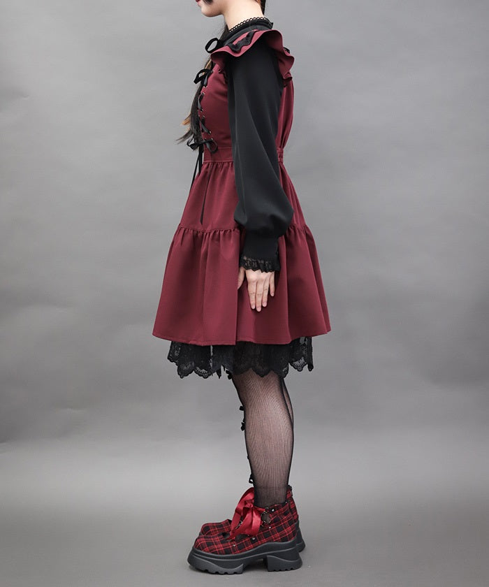 Designed with lace-ups and shoulder frills, this statement piece locks in on its pursuit of cuteness.