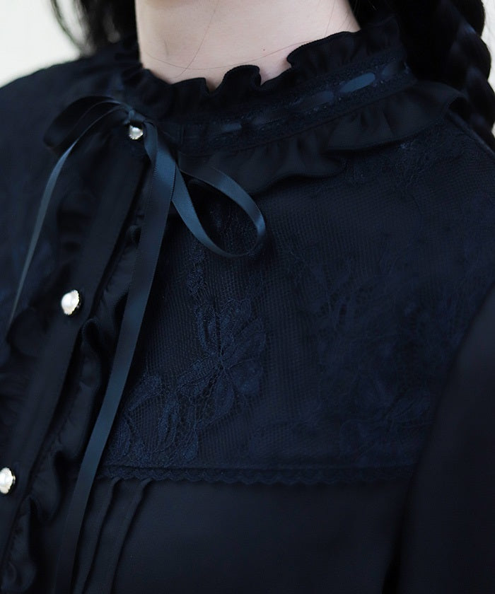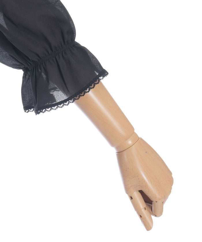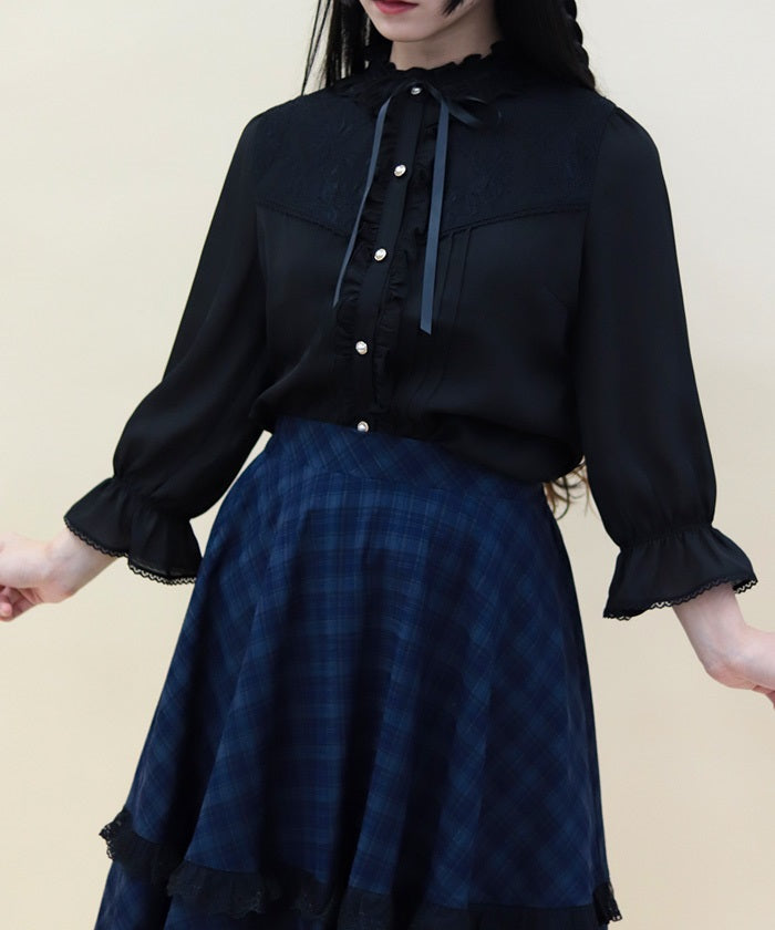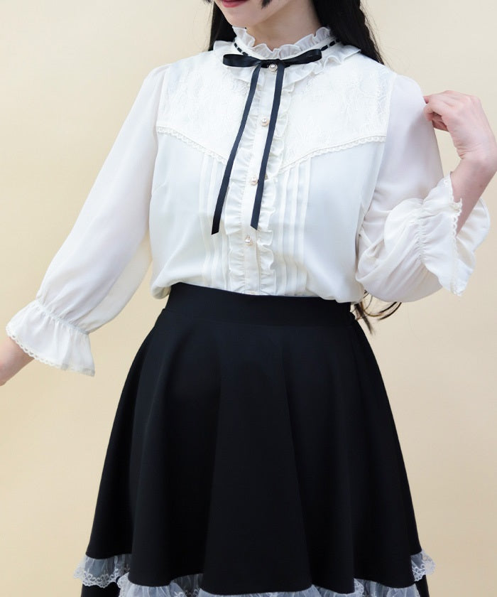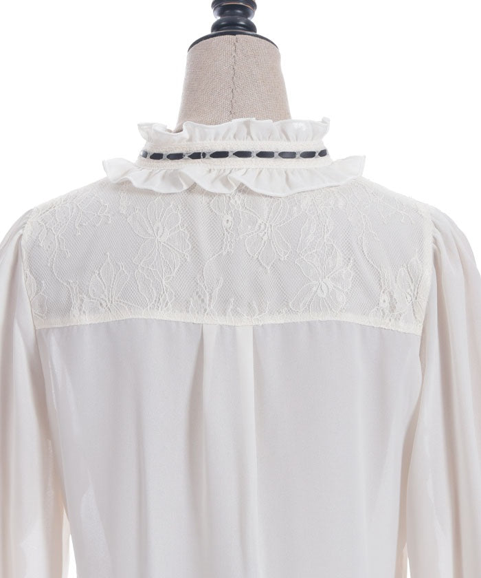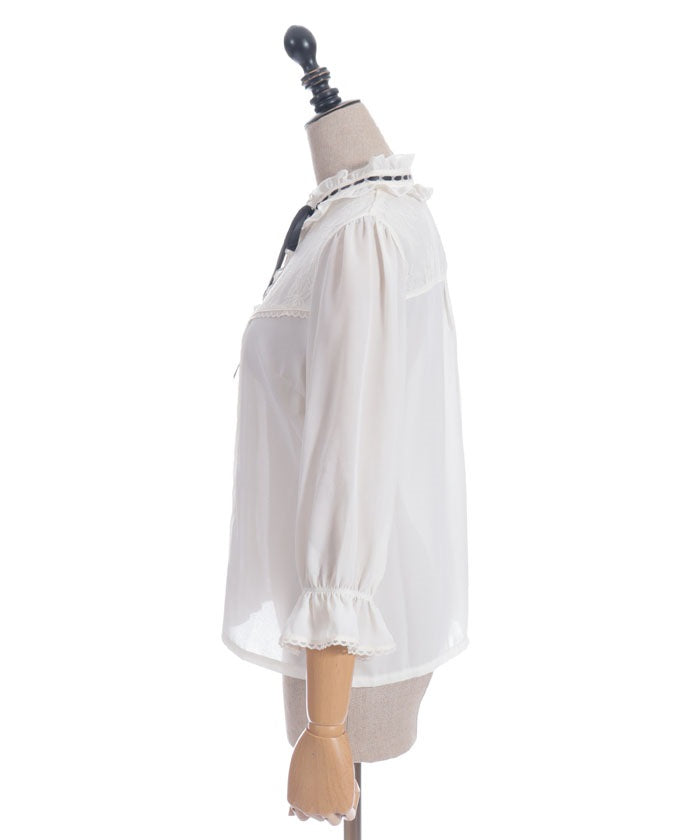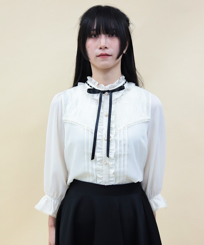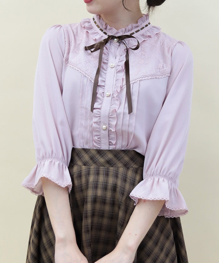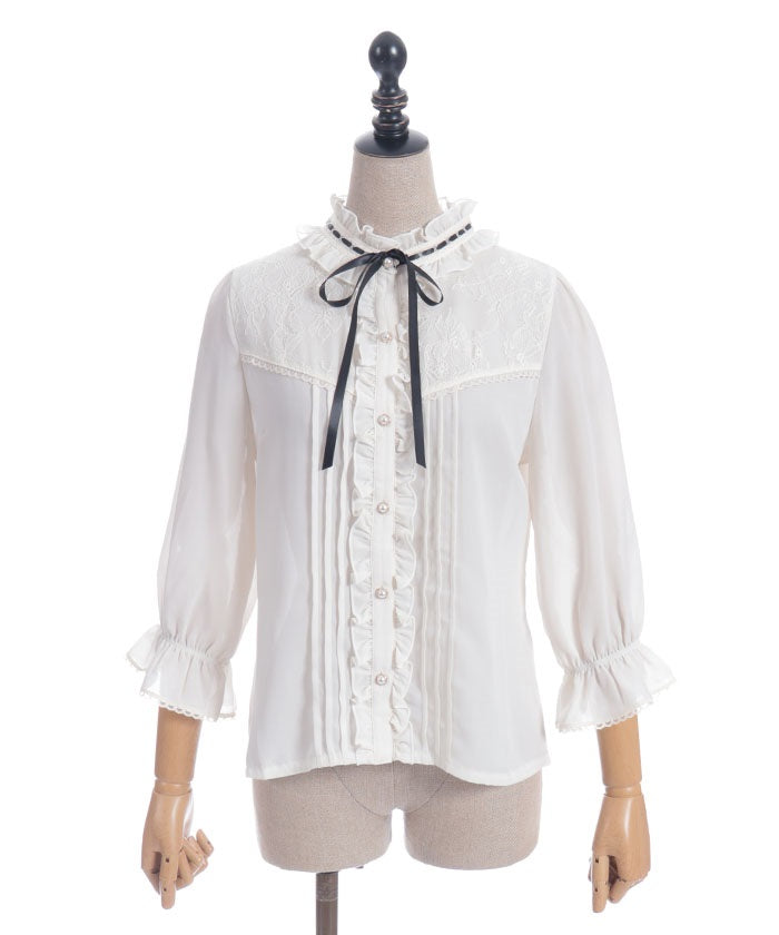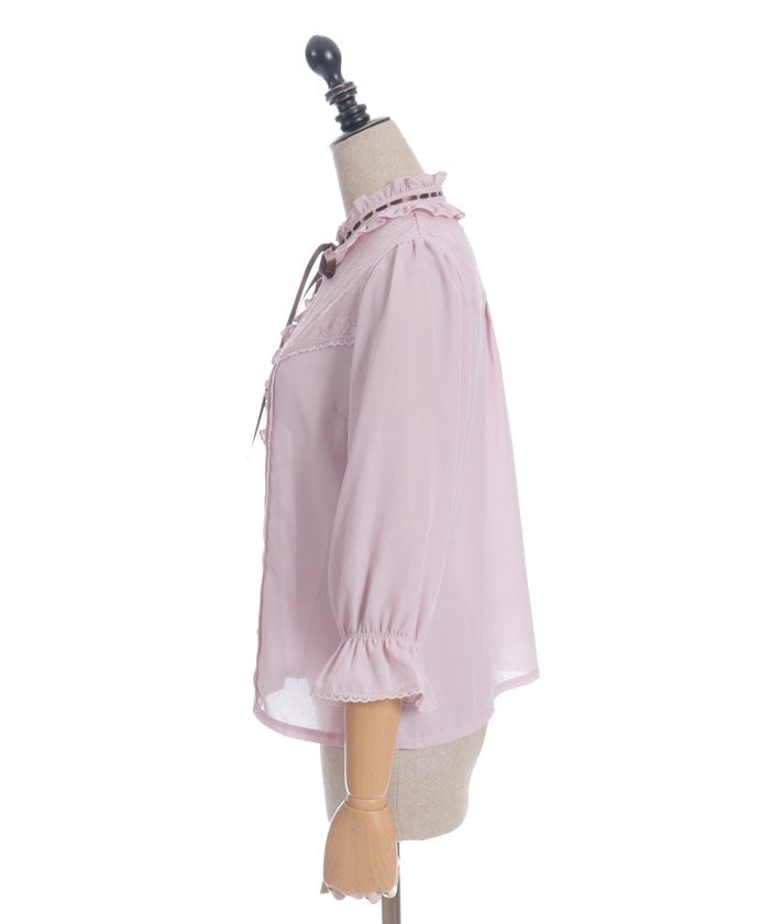 A three-quarter sleeve blouse with a girly ladder lace design.