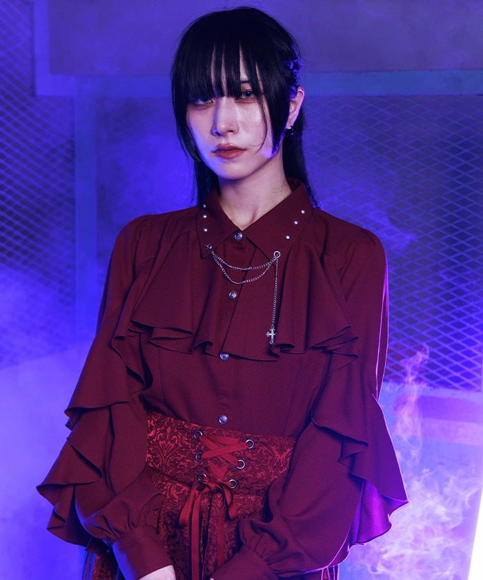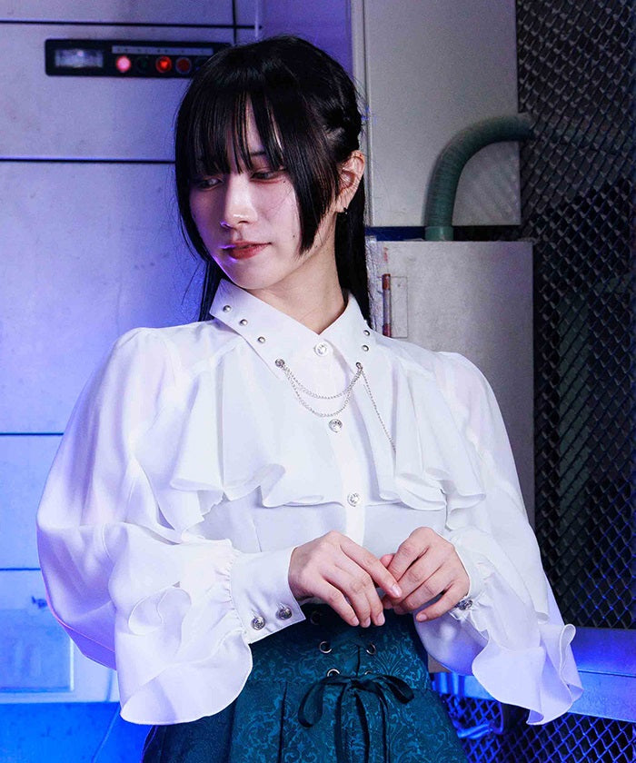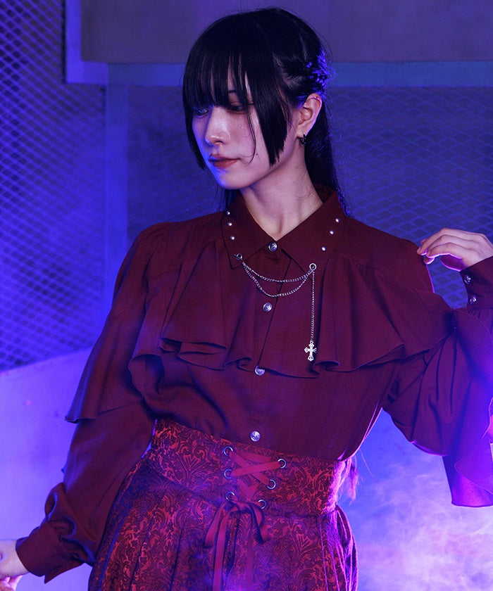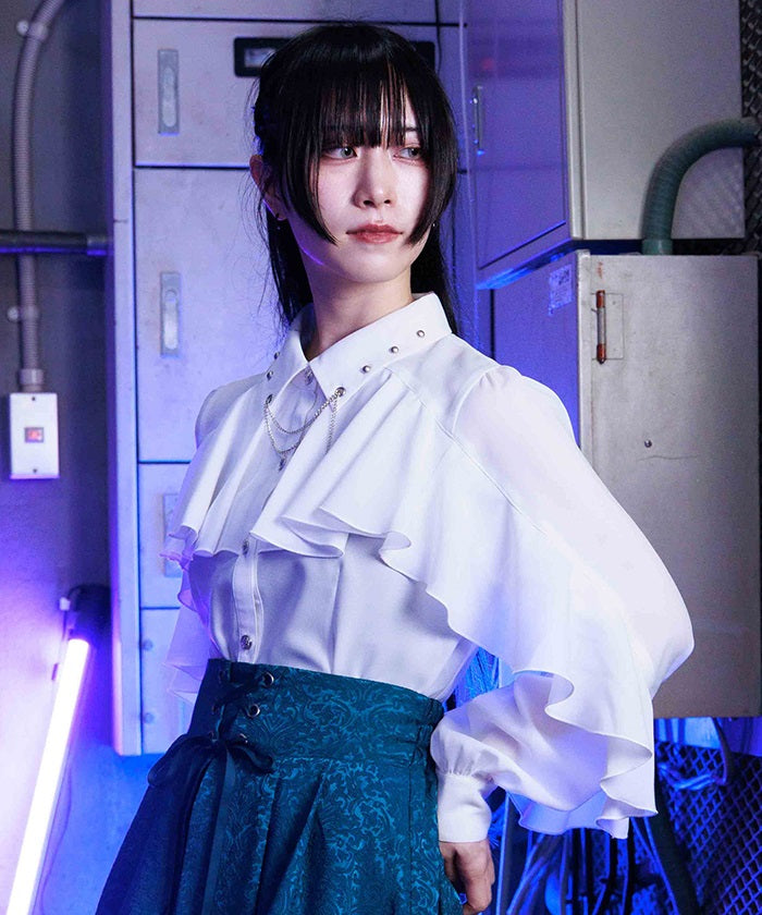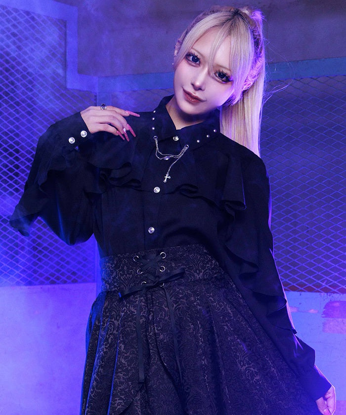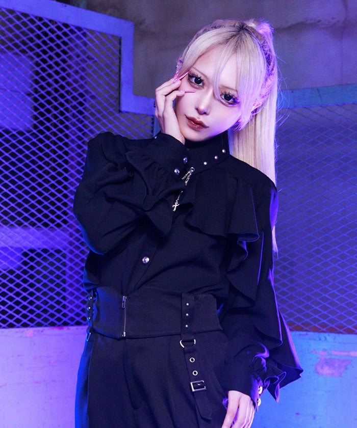 This piece pairs well with skirts, as well as bold pants like our Long Pants with Harness.