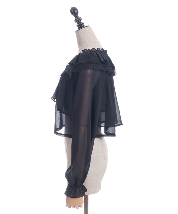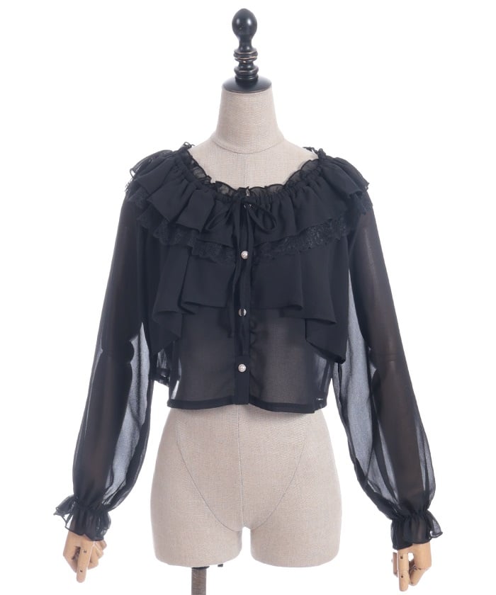 This blouse features light chiffon frills for a breezy, refreshing look.