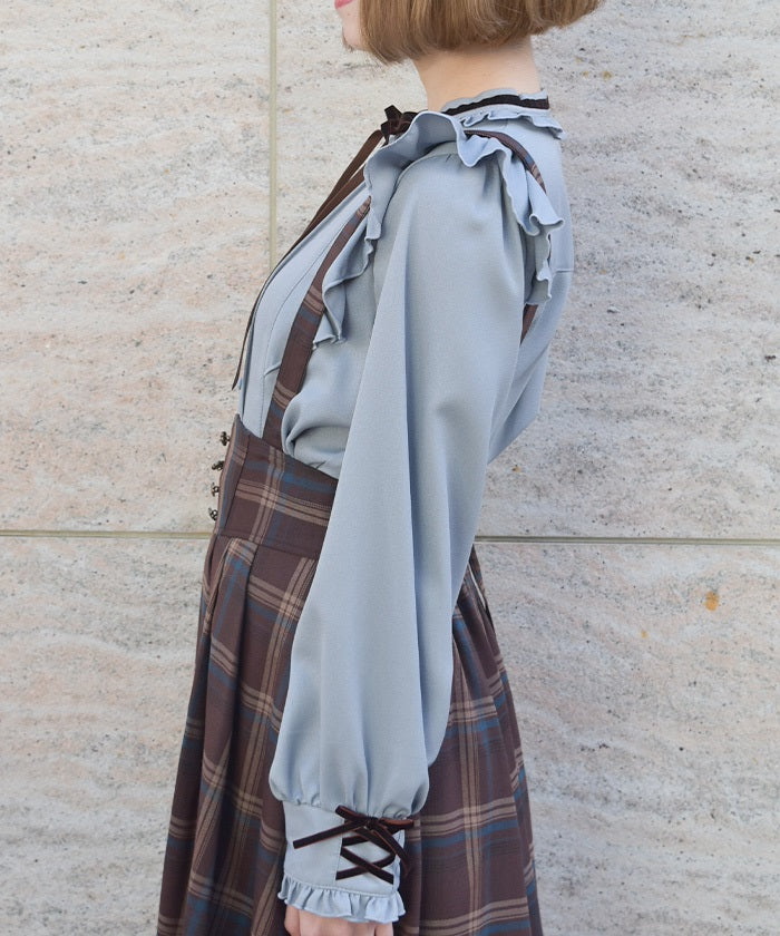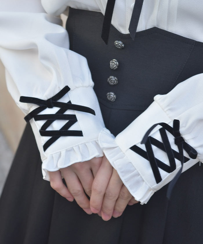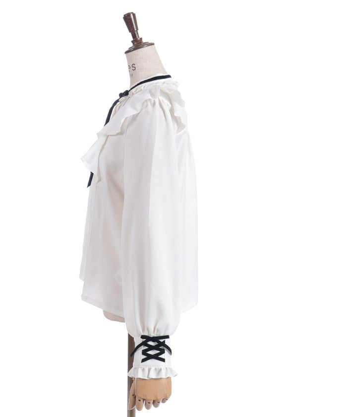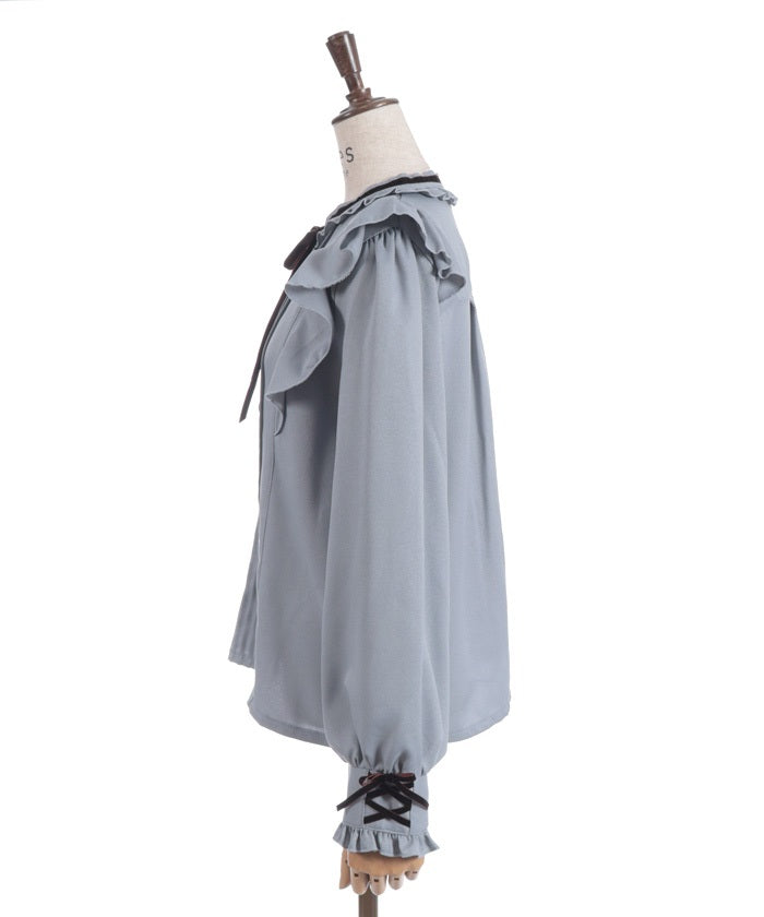 This blouse features lace-up cuffs for a feminine finish all the way down to the hands.