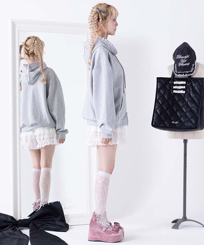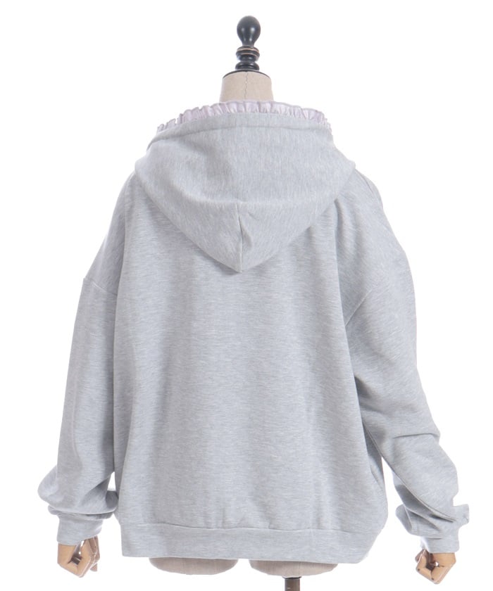 The satin fabric inside the hood and the satin ruffles around the hood are eye-catching details.