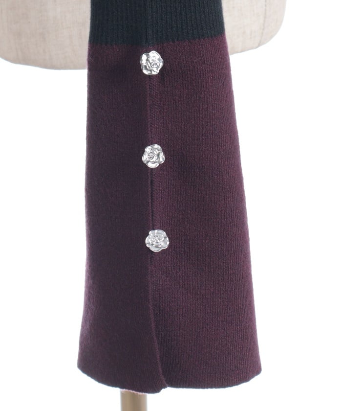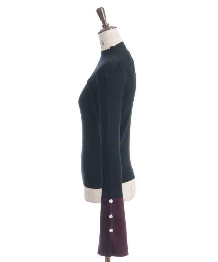 The body features a clean ribbed knit, while the cuffs feature a flared panel for a relaxed yet modern look. The rose buttons on the cuffs add a subtle accent, adding a touch of style with every movement.