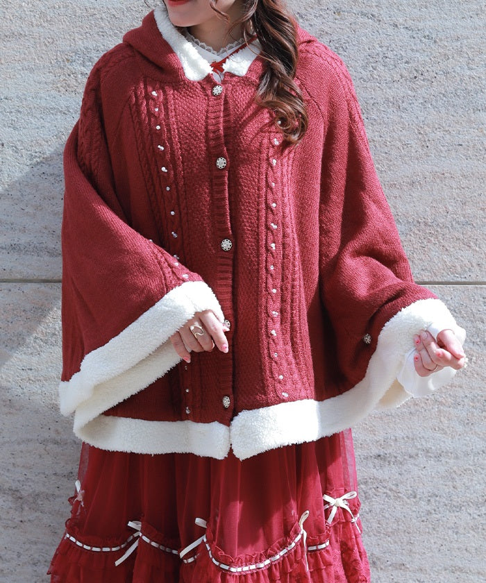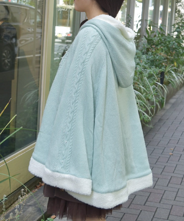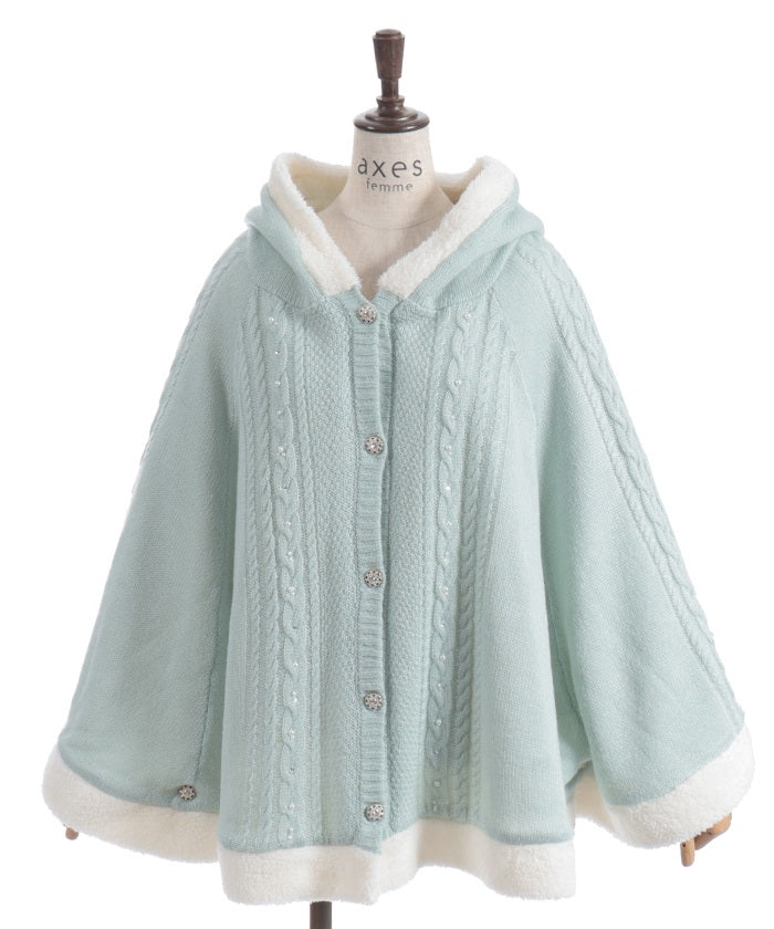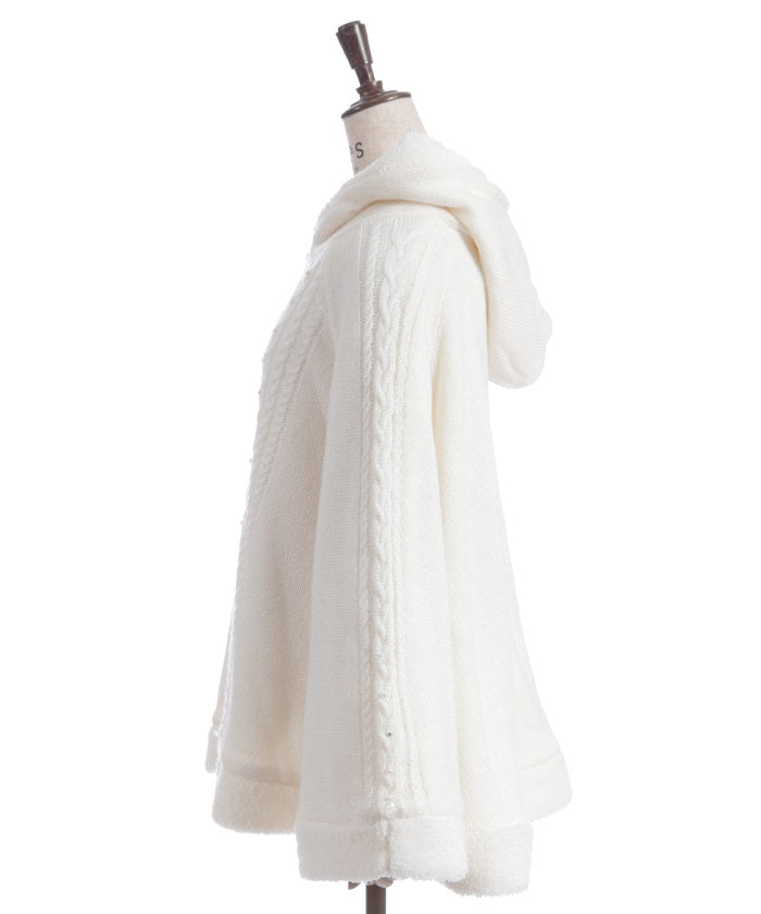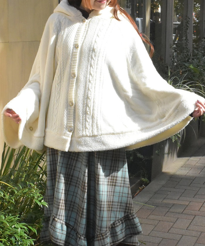 The buttons under the sleeves open and close, transforming it into a cape, so you can wear it either way, depending on what you're wearing underneath.