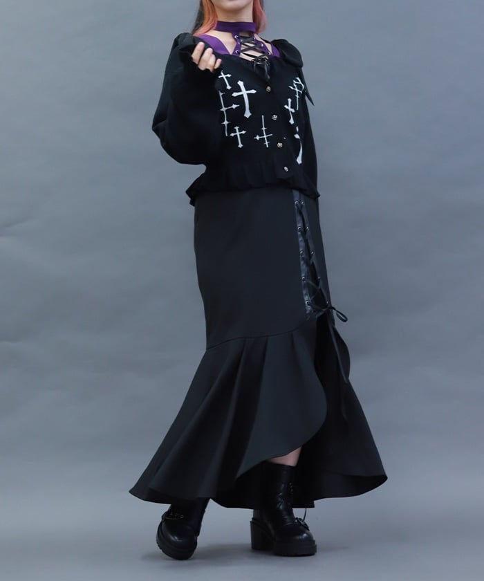 We recommend pairing this with our Decollete Lace-Up Blouse.