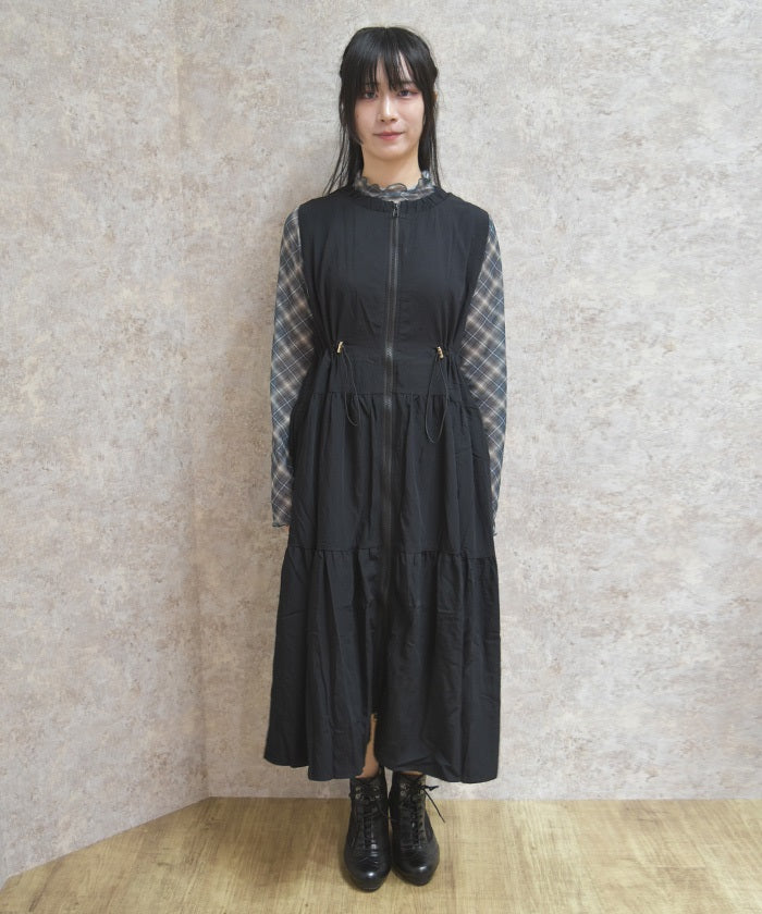 This woven vest features an eye-catching tiered design. The front zipper makes it easy to put on and take off, making it a perfect accent piece for layered outfits.