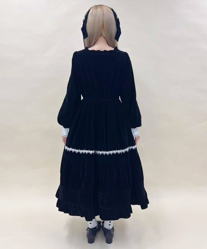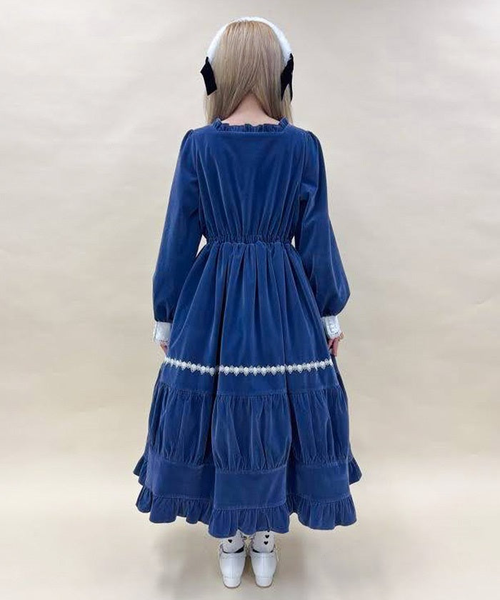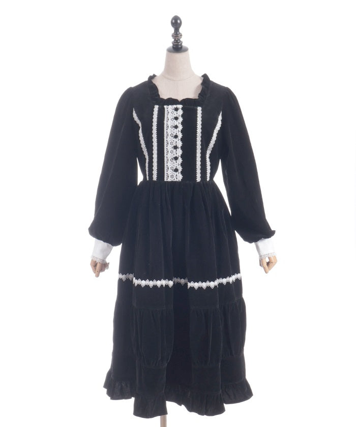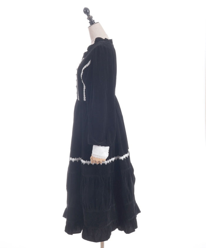 This dress is made with a luxurious fabric perfect for winter, further accented with lace.