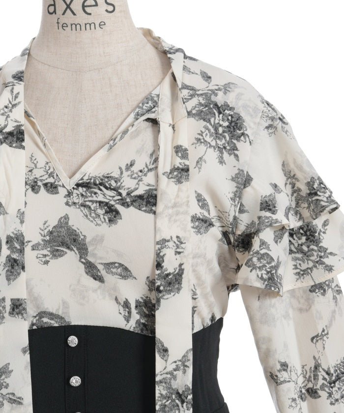 Available in mocha and black for the floral blouse and solid skirt, and in brown for the checked blouse and solid skirt. The look changes dramatically depending on the color.
