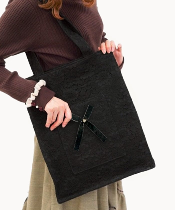 A gorgeous all-lace vertical tote bag.