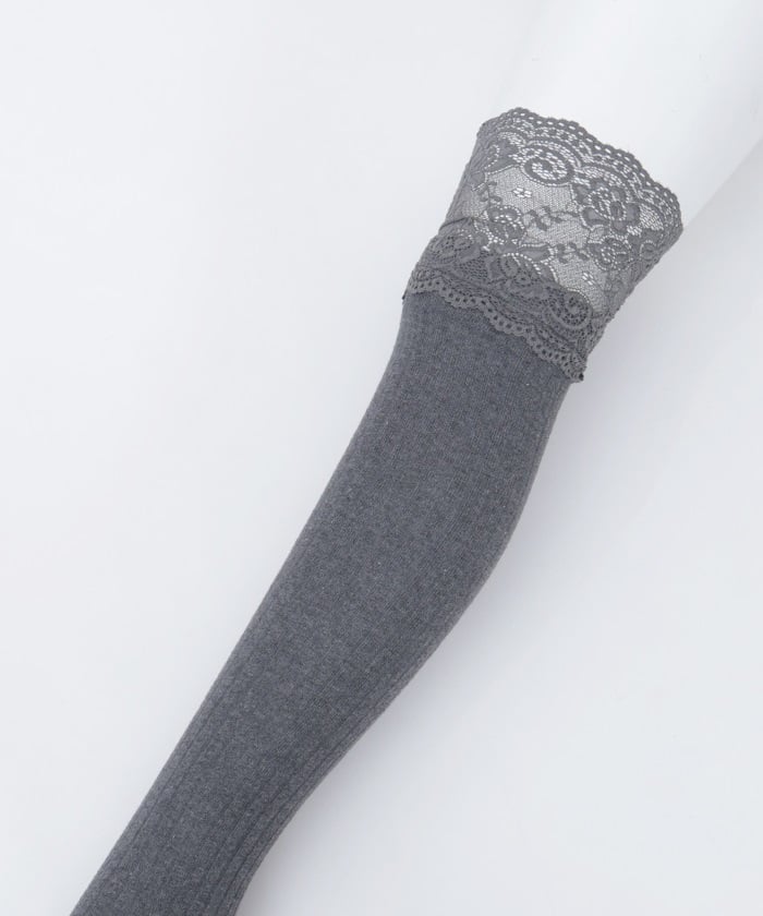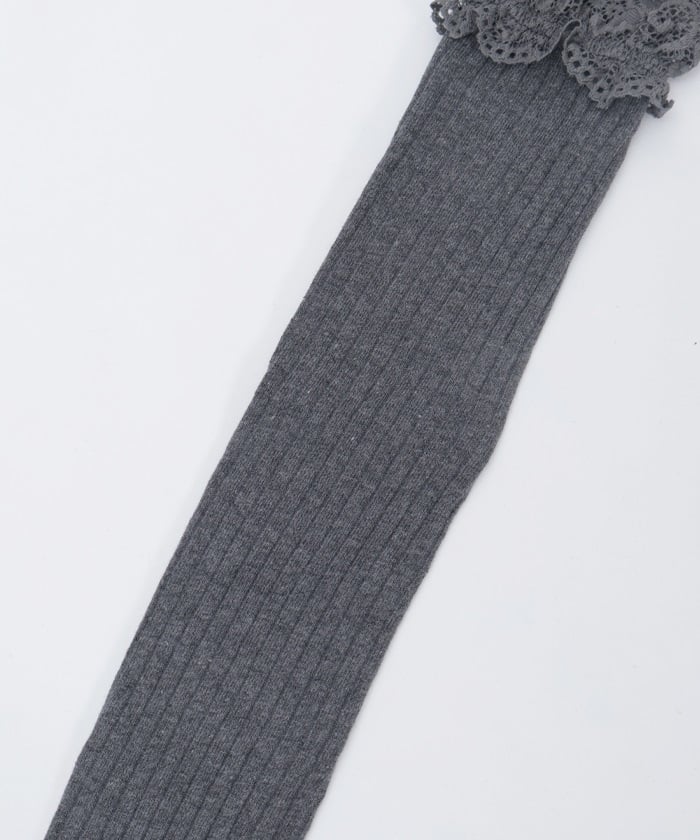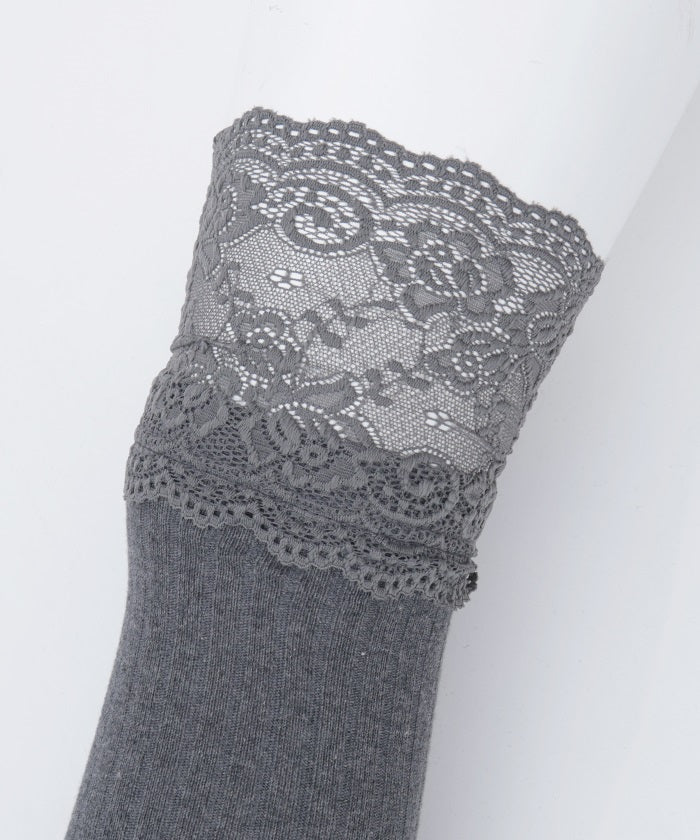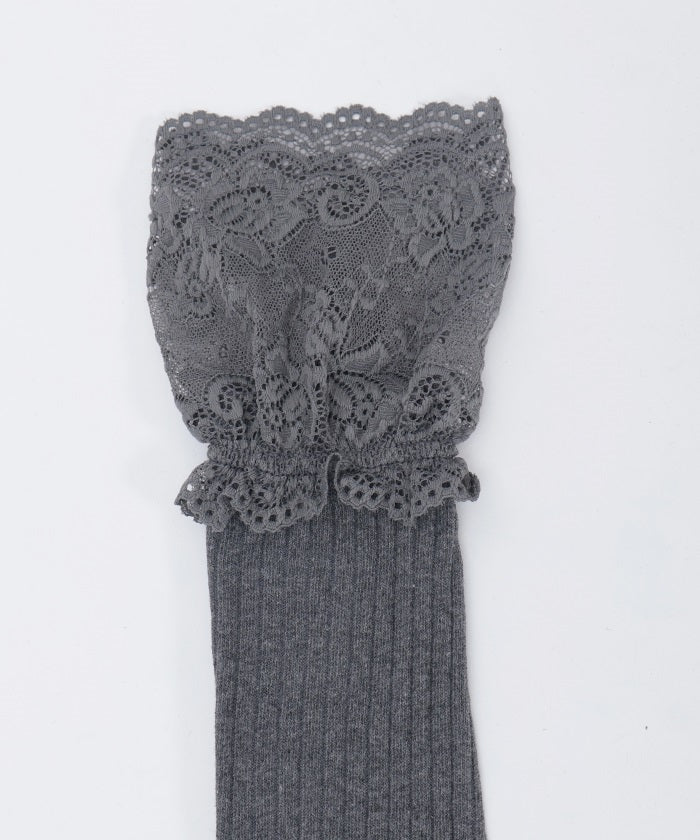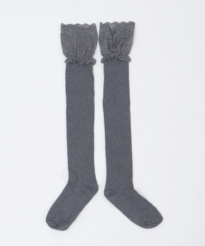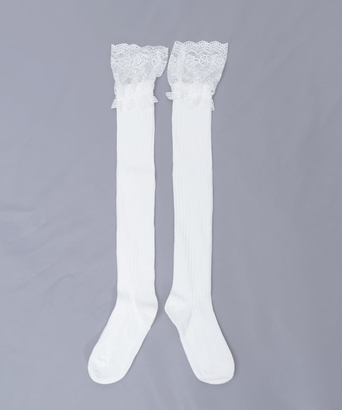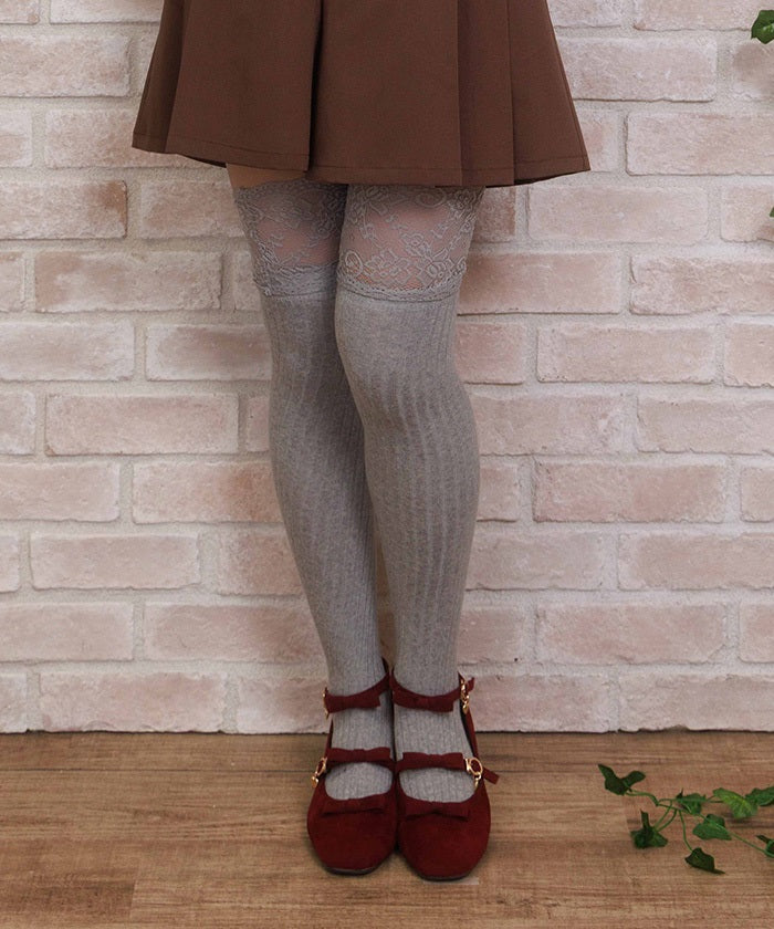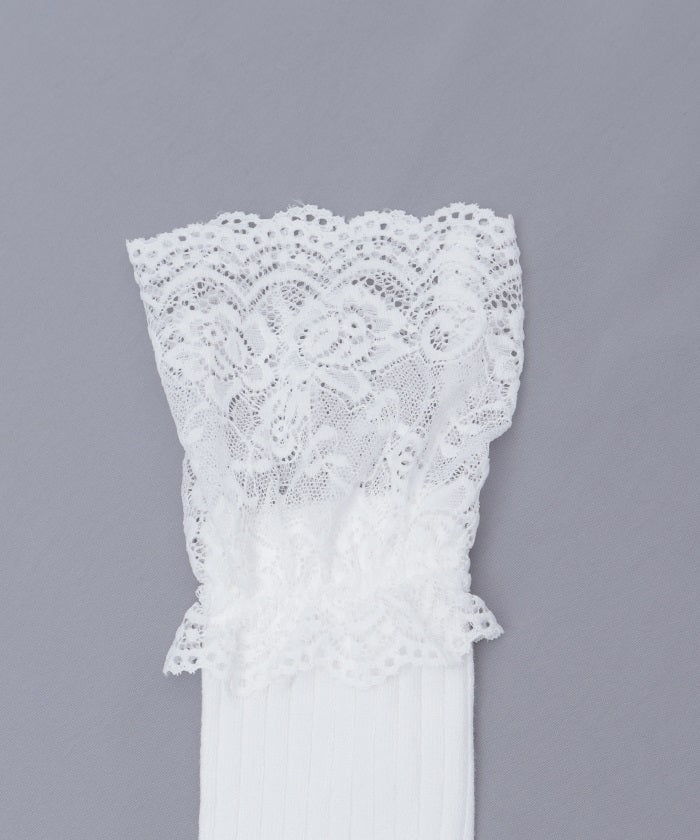 Girly ribbed knee-high socks with lace.