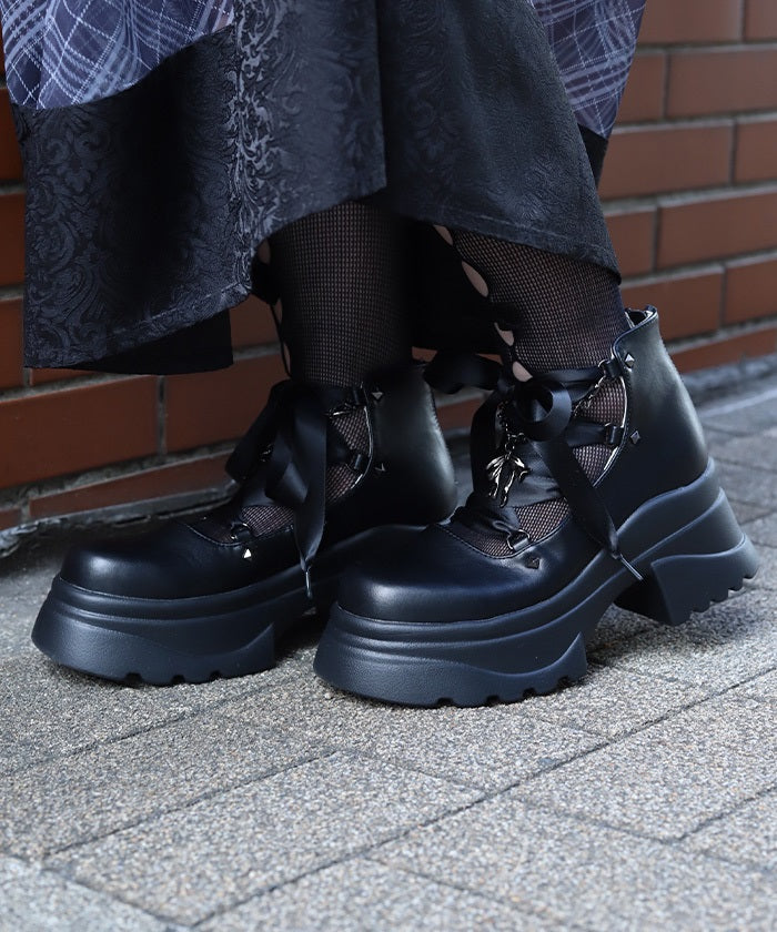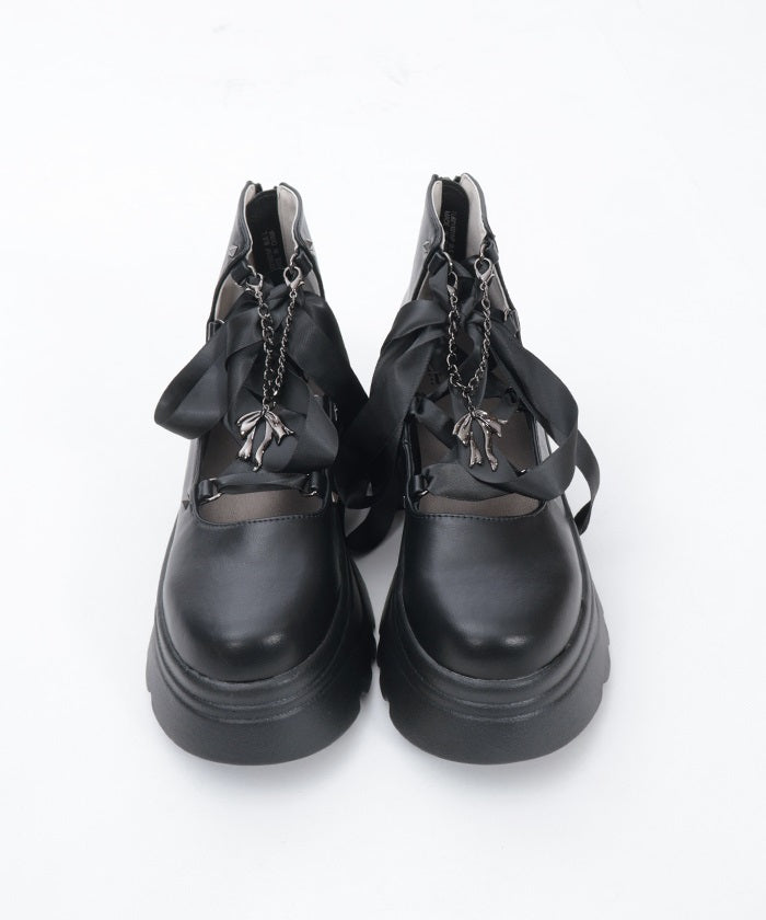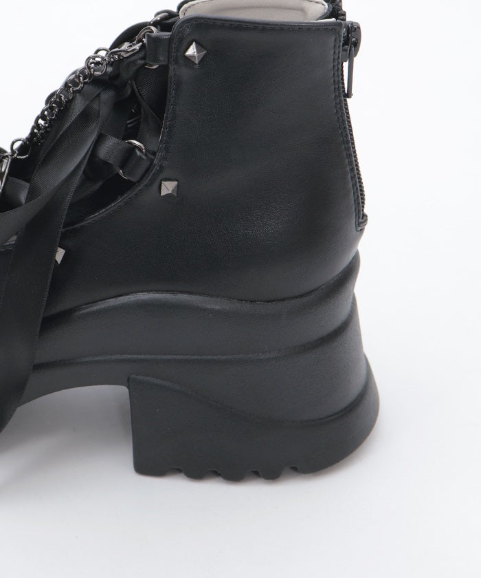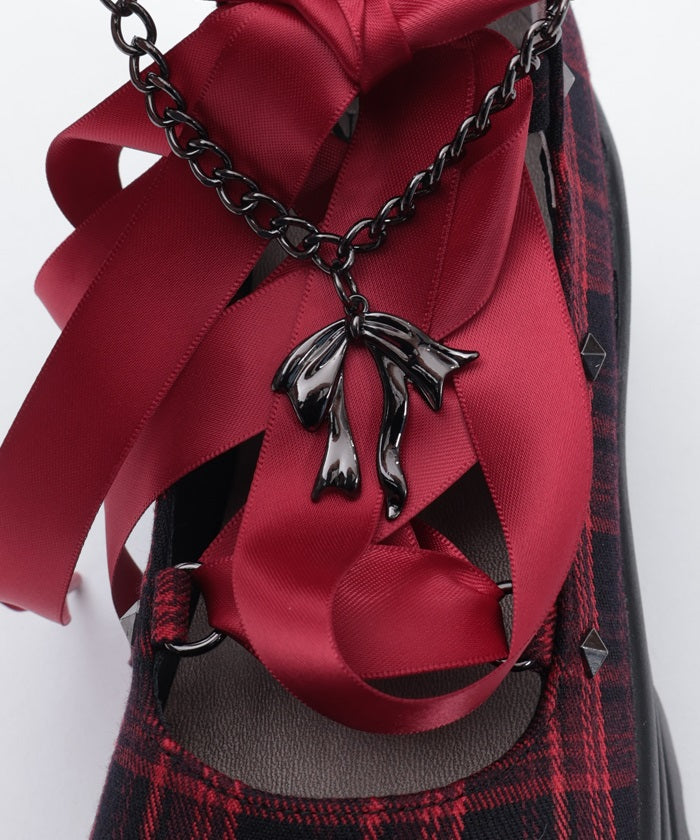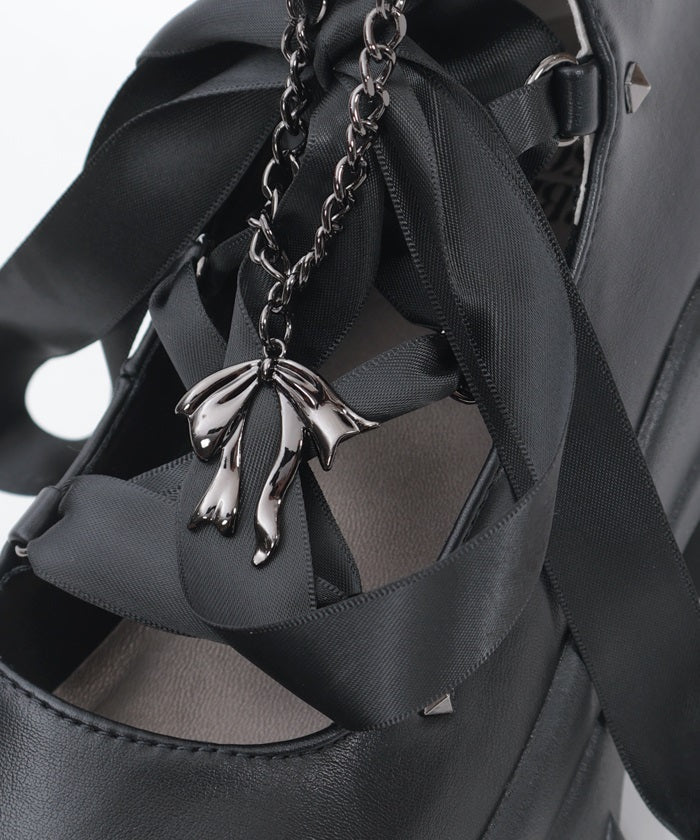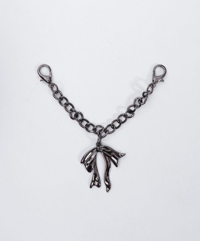 Small studs and a chain with a ribbon charm give it a sweet & edgy accent.