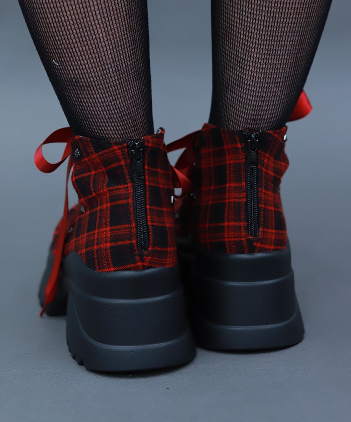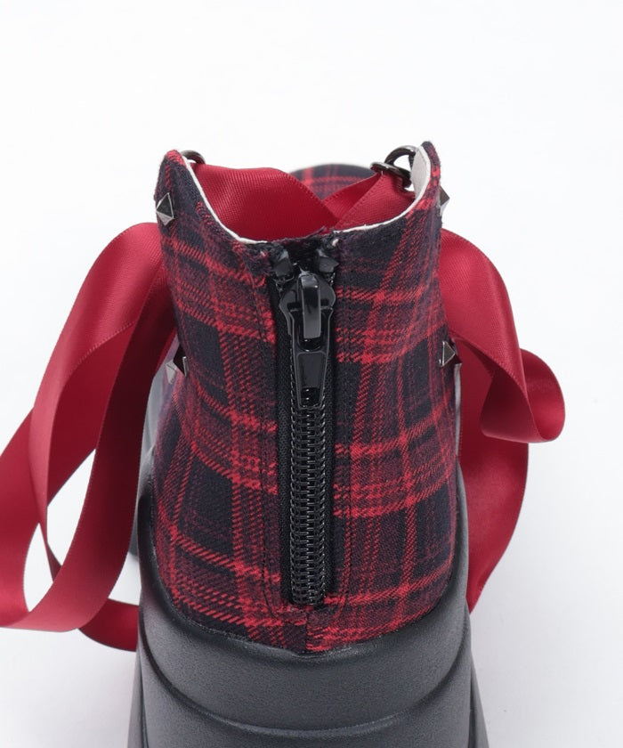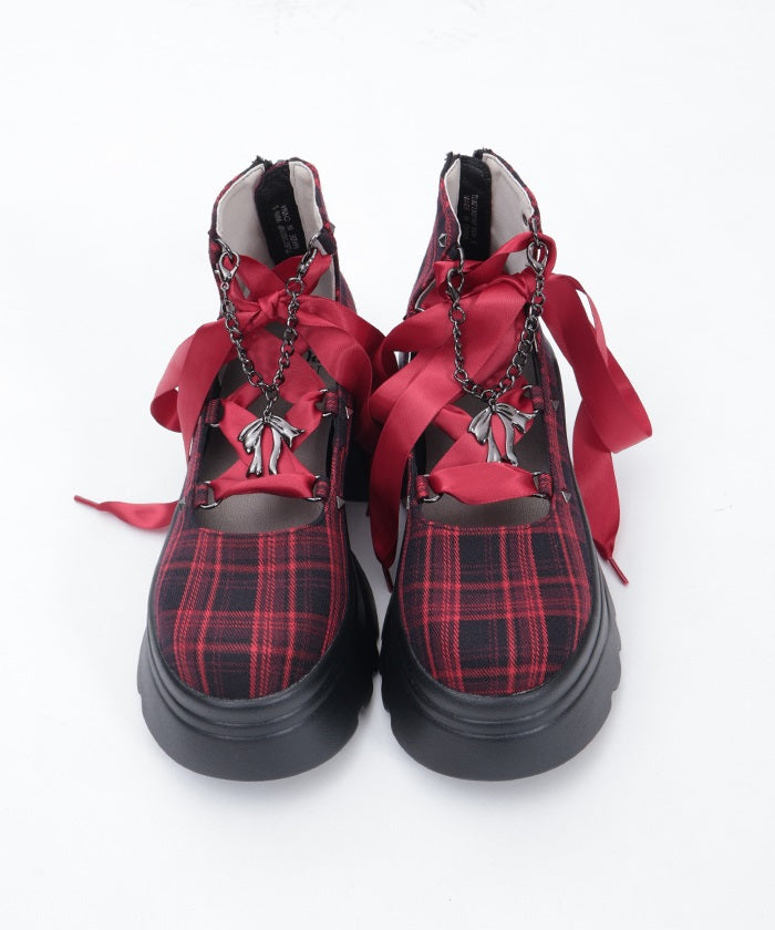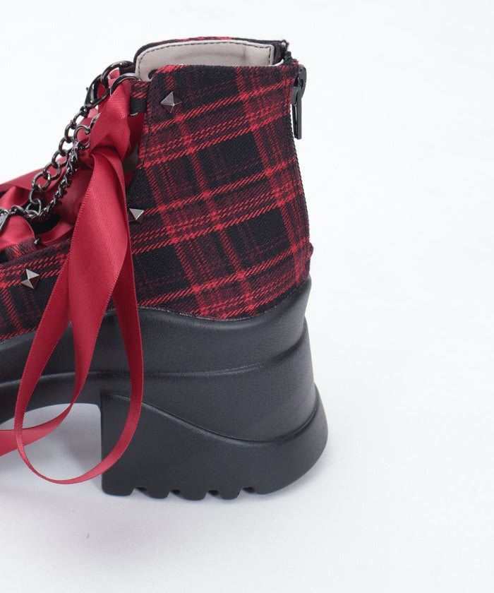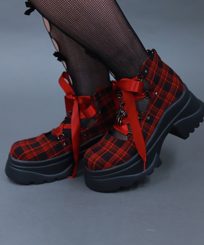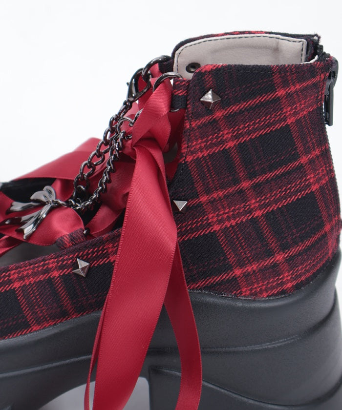 Small studs and a chain with a ribbon charm give it a sweet & edgy accent.