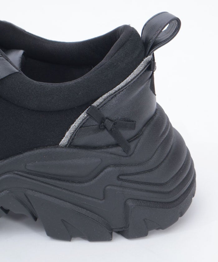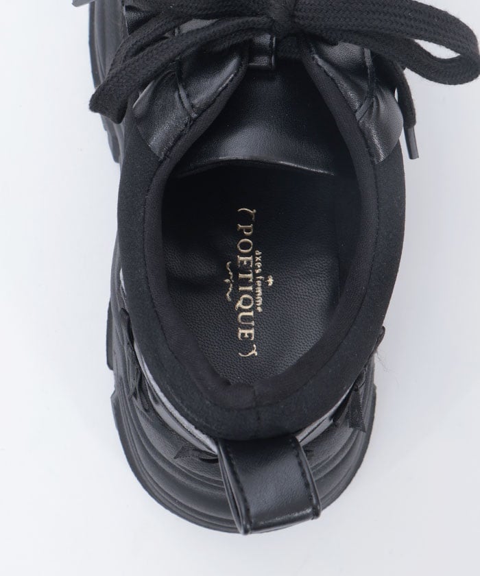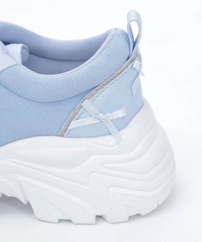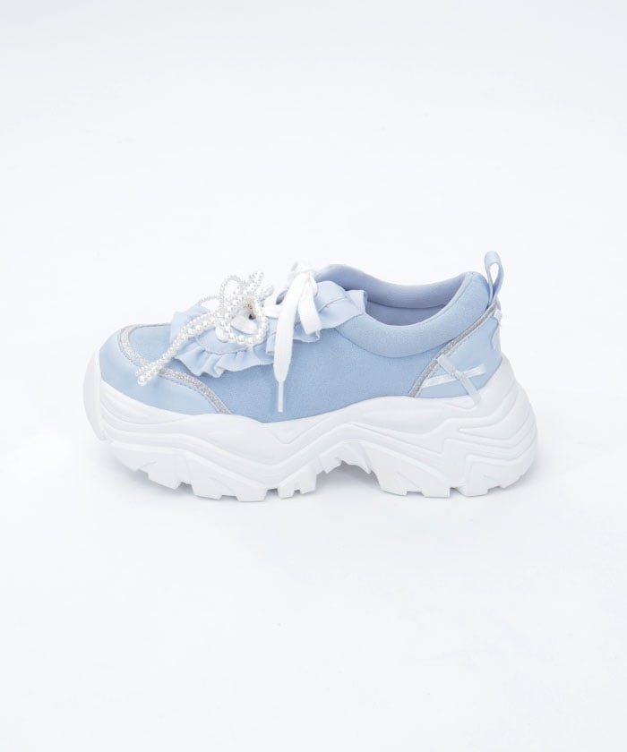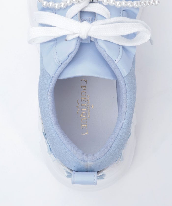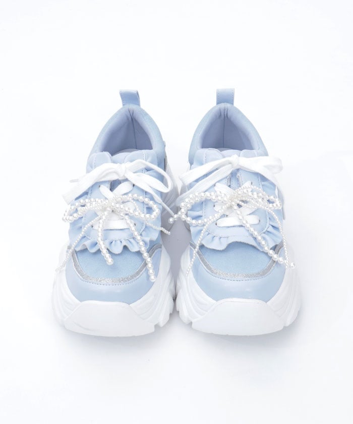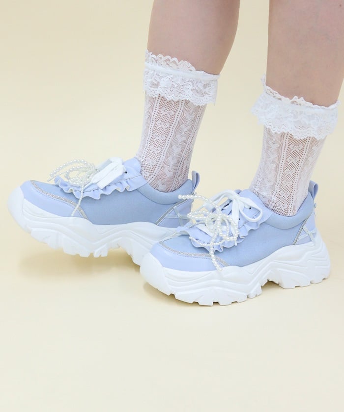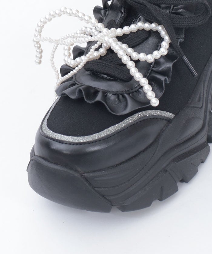 Platform sneakers with pearl ribbon charms.