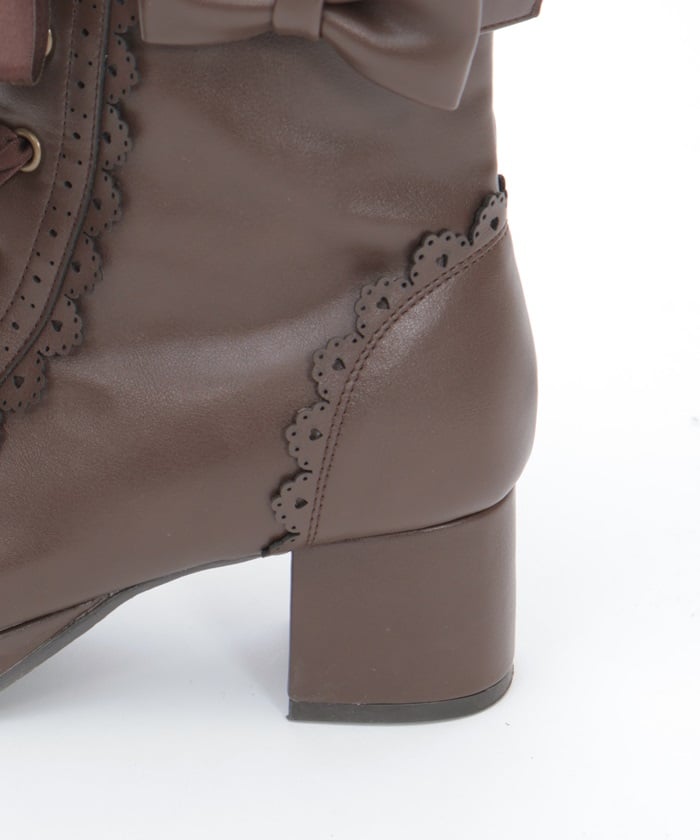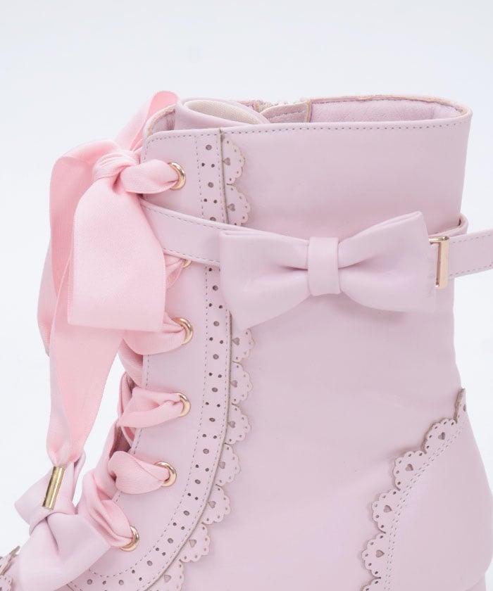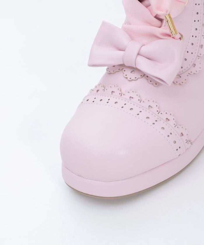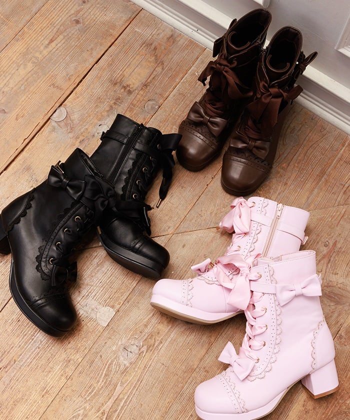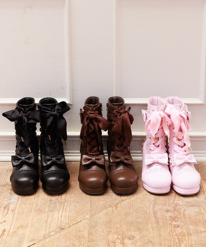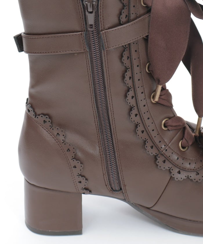 A cute design with subtle heart-shaped punch-outs. These boots are the perfect complement to Chalmiere's outfits, featuring plenty of lace-up and ribbon details. In addition to the classic brown and black colors, we've also added a pink that's perfect for pastel outfits! The zippers on the inner sides makes them easy to put on and take off.