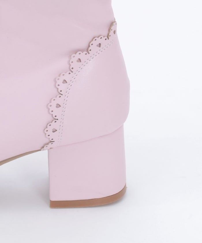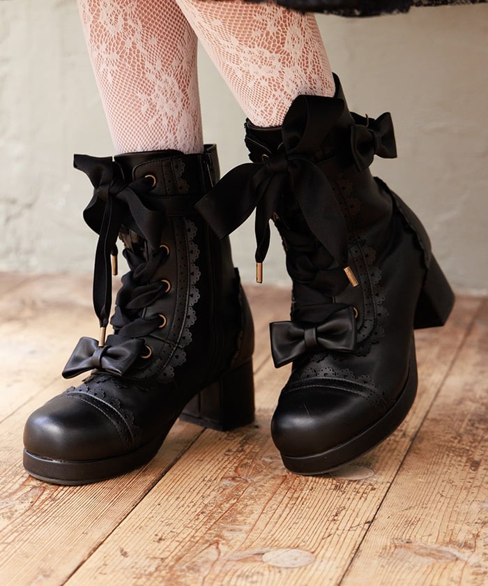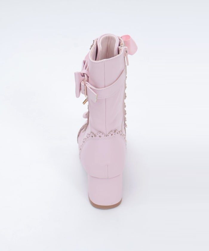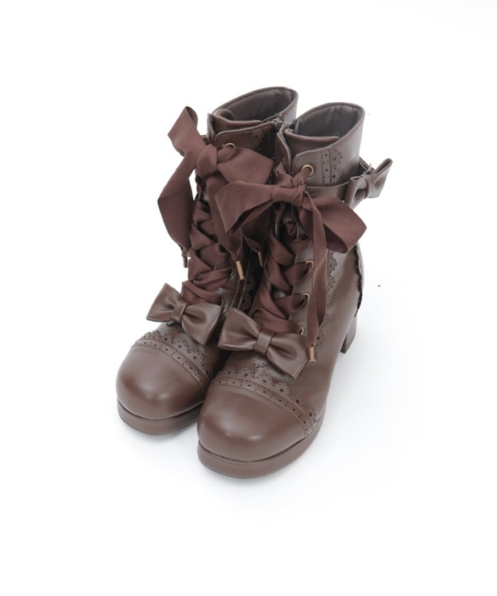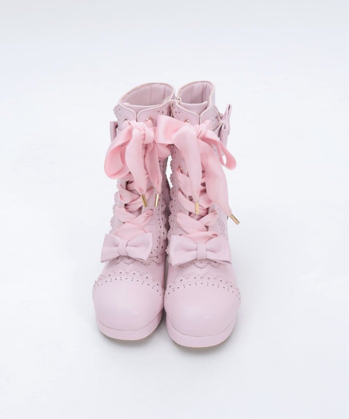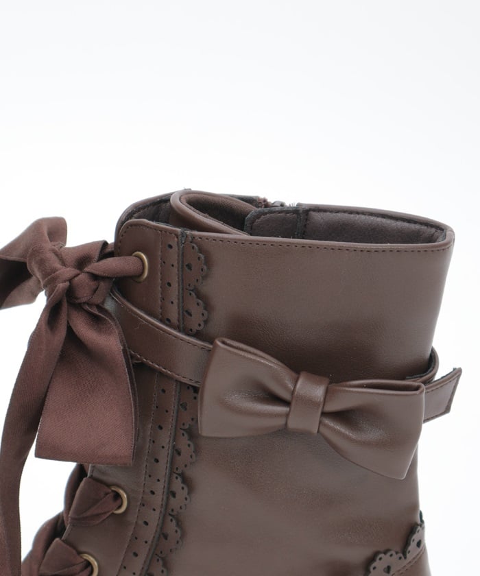 A cute design with subtle heart-shaped punch-outs. These boots are the perfect complement to Chalmiere's outfits, featuring plenty of lace-up and ribbon details. In addition to the classic brown and black colors, we've also added a pink that's perfect for pastel outfits! The zippers on the inner sides makes them easy to put on and take off.