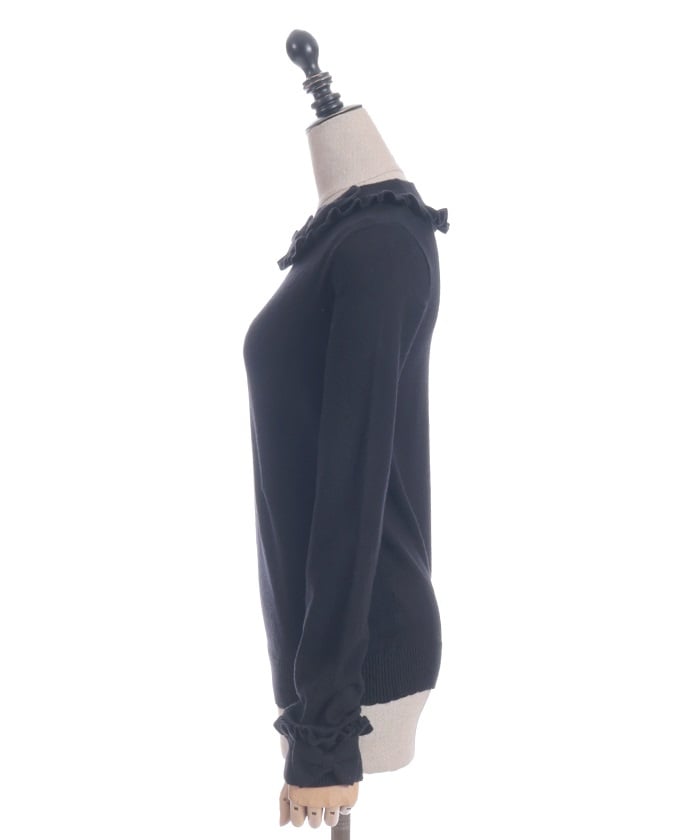 This pullover features knit ribbons at the collar and cuffs. Its solid color makes it easy to wear and perfect for cold weather.