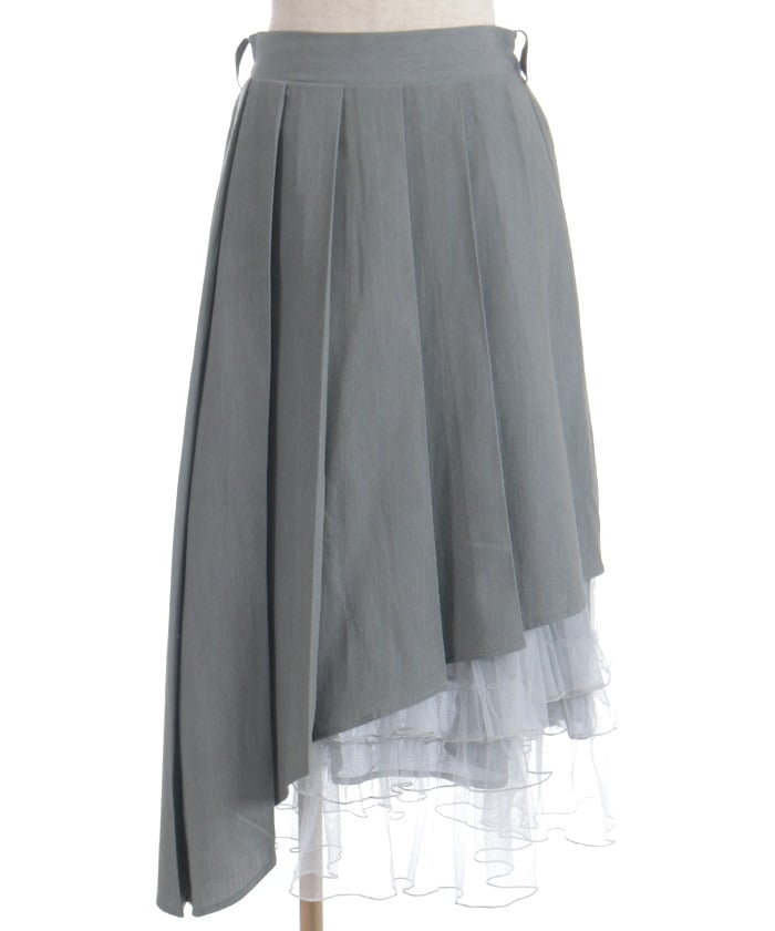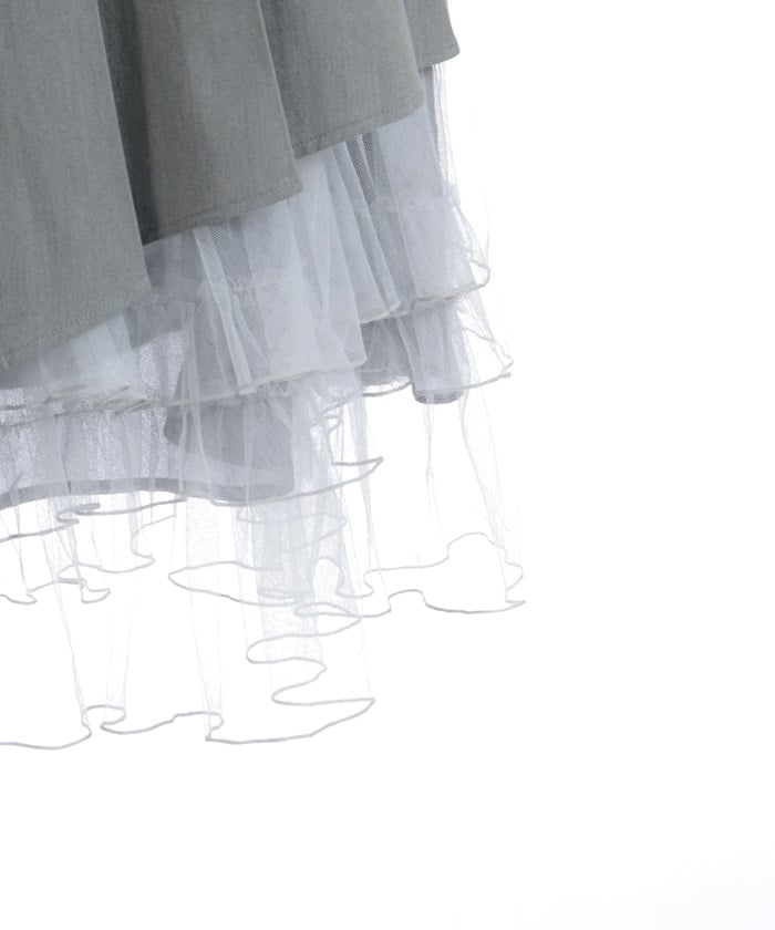 A sleek pleated skirt combined with voluminous tulle tiers.