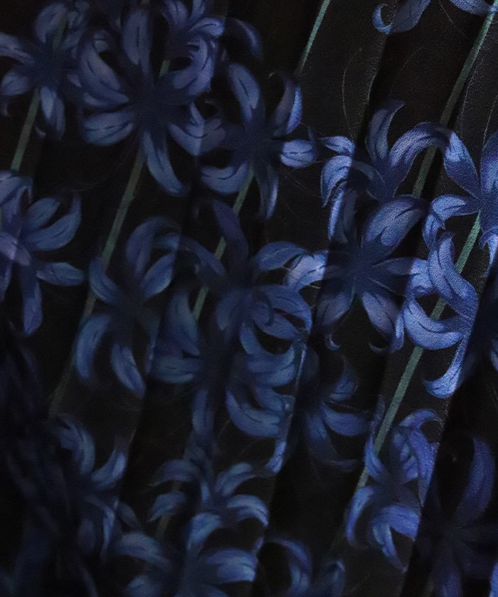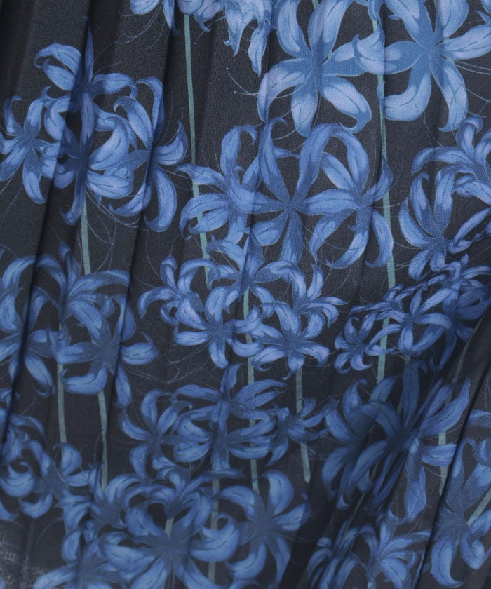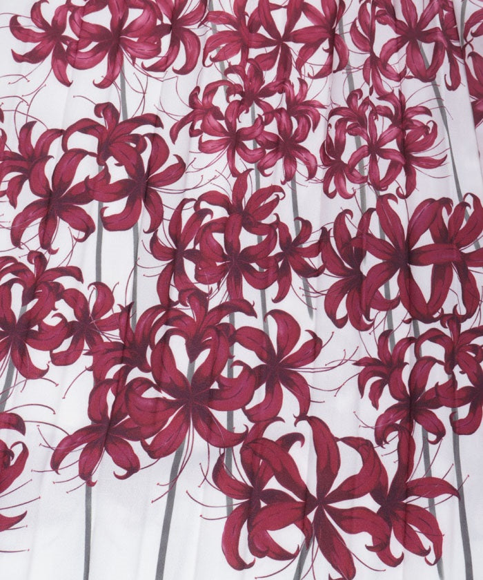 A dress with a red spider lily motif, radiating a strong presence amidst its calm atmosphere. The beauty of the print adds an impressive accent to your outfit.