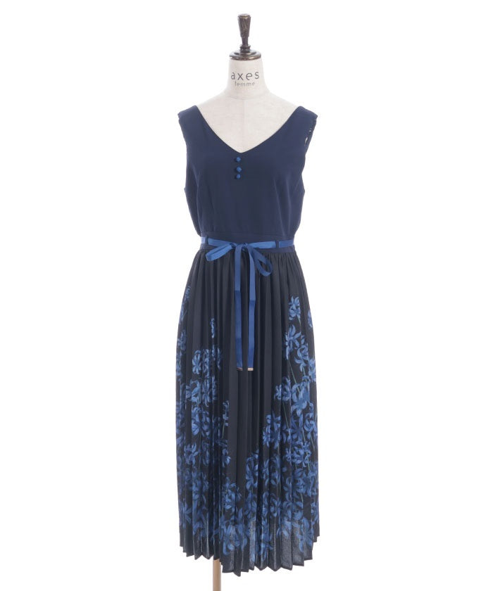 The ribbon at the waist is detachable, allowing you to arrange it to suit your style. The balance between its simple bodice and the gorgeous skirt is key. The buttons on the front also add a subtle accent.