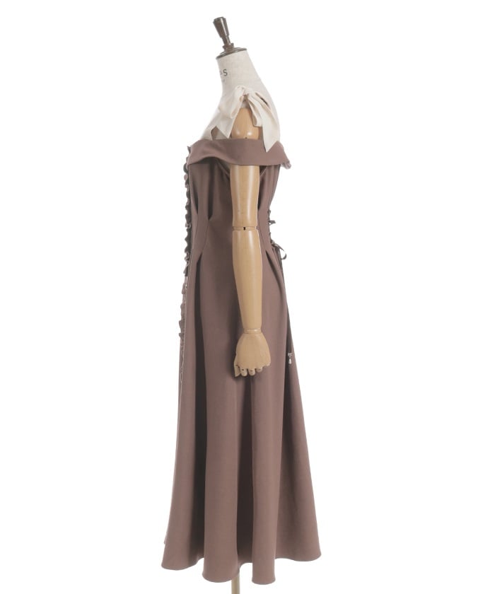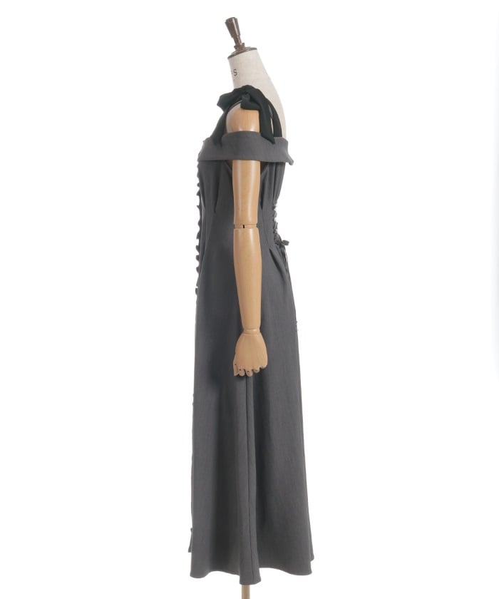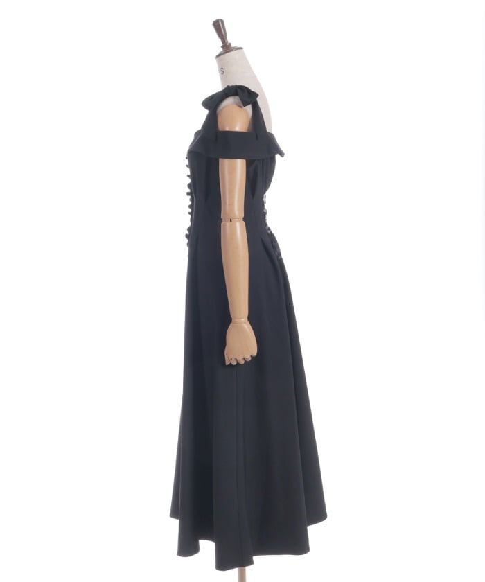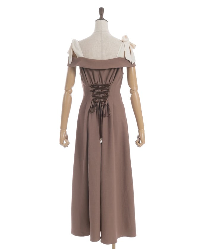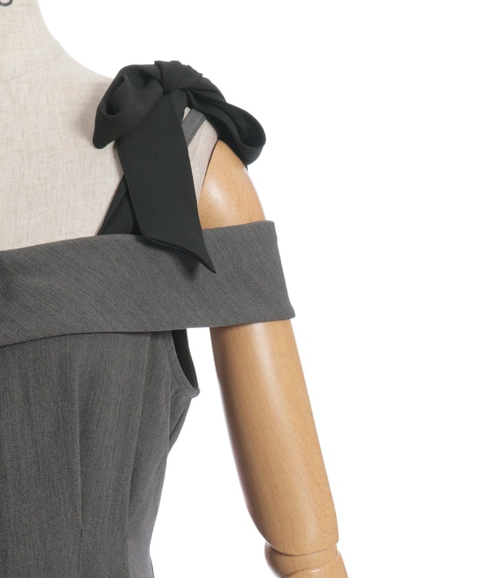 The off-the-shoulder design flatters the décolleté, creating a sophisticated, feminine style. The adjustable shoulder straps allow you to change the look depending on how you tie them. The elegant flare from the waist to the hem creates a beautiful sway with every movement.