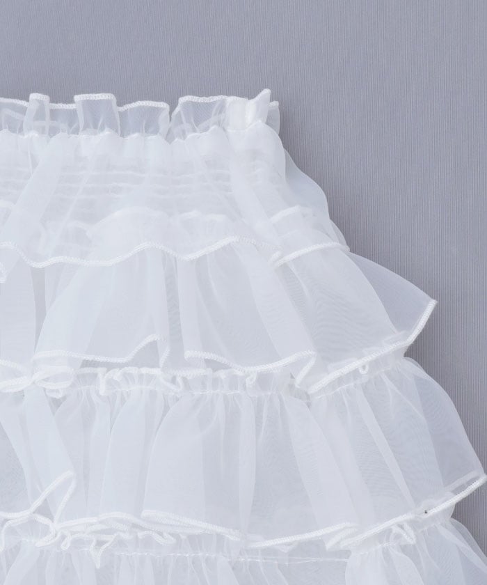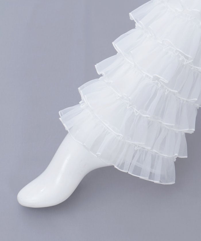 Leg covers with lots of organza frills are now available! The perfect item for trendy outfits.