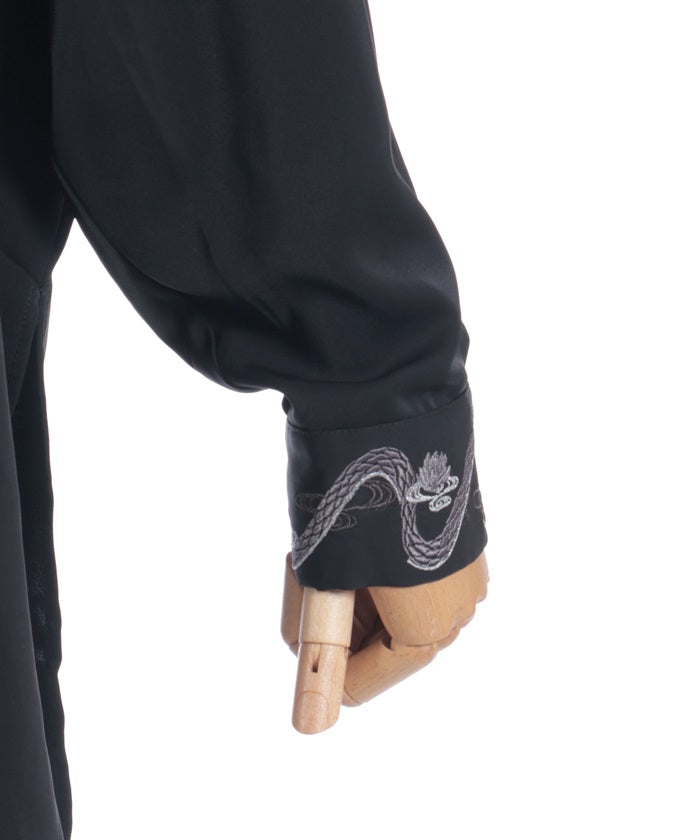 A long shirt featuring mystical embroidery of snakes and lotuses.