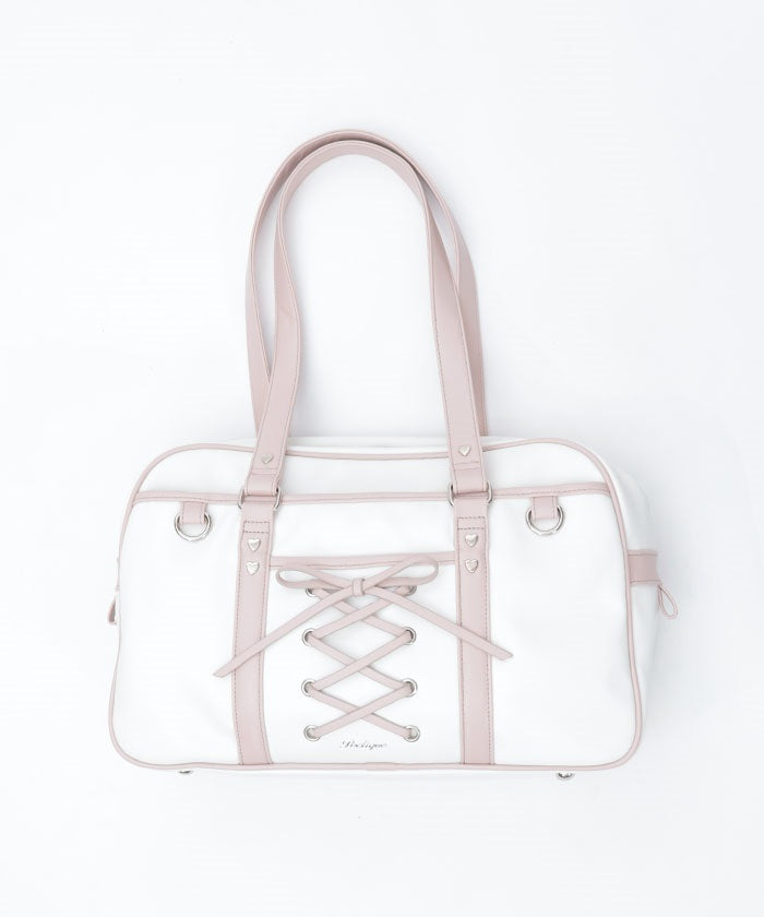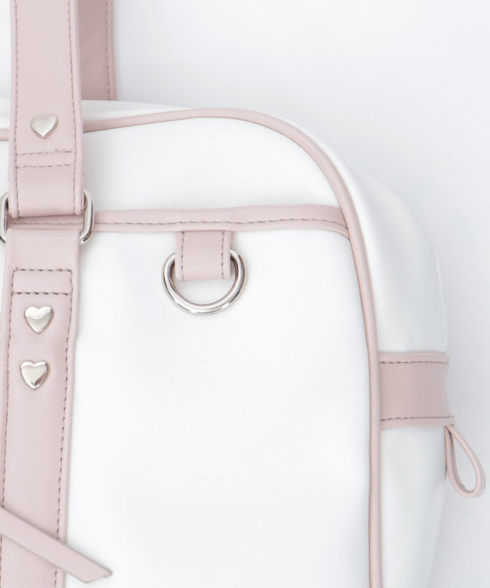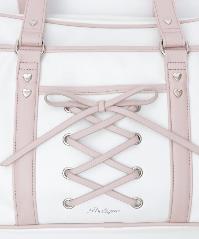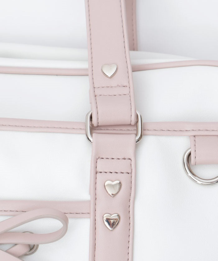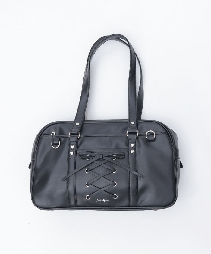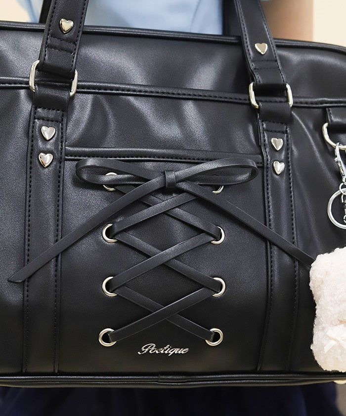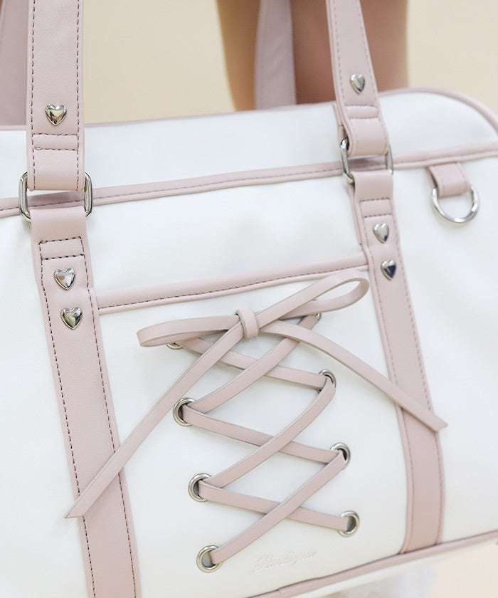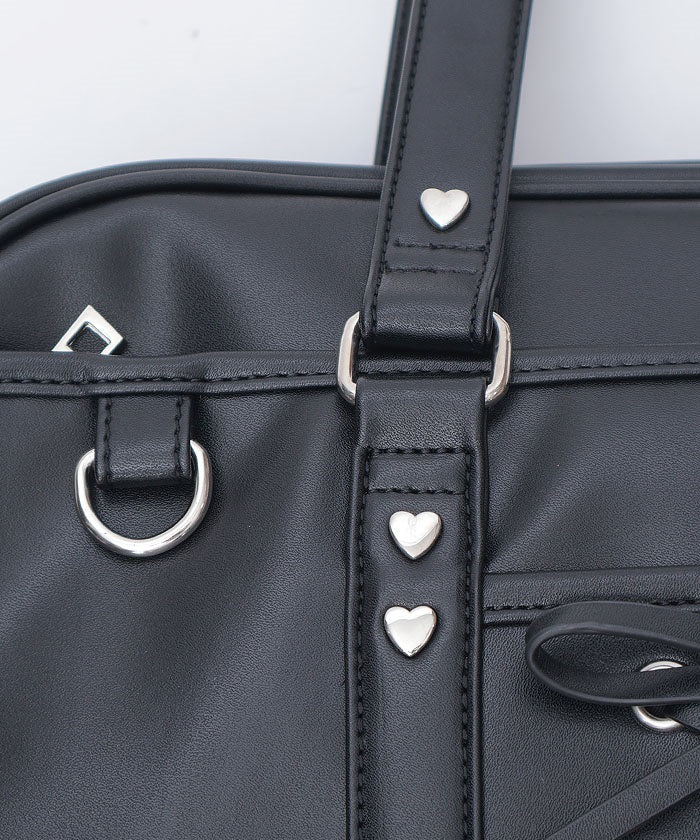 The heart studs and eyelets in matching silver plating becomes its highlight point.