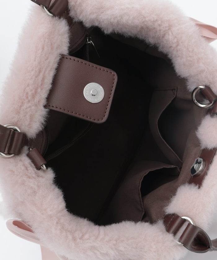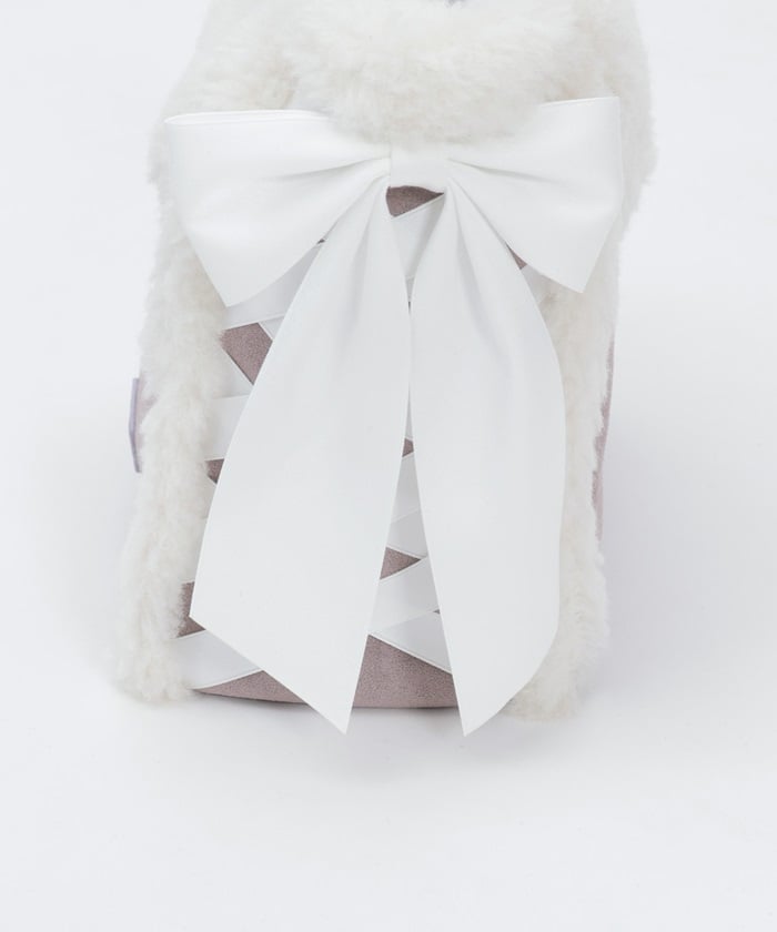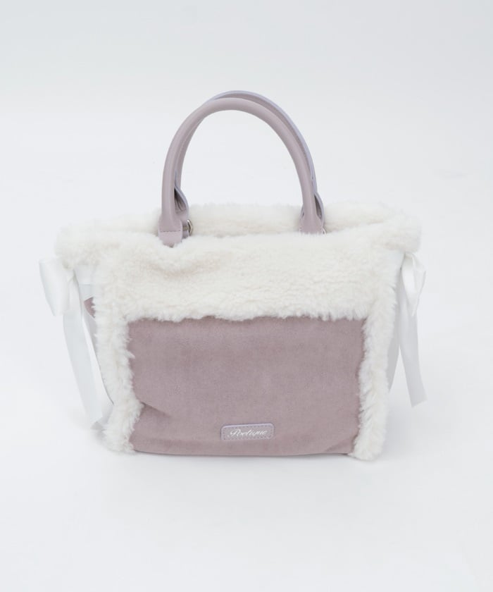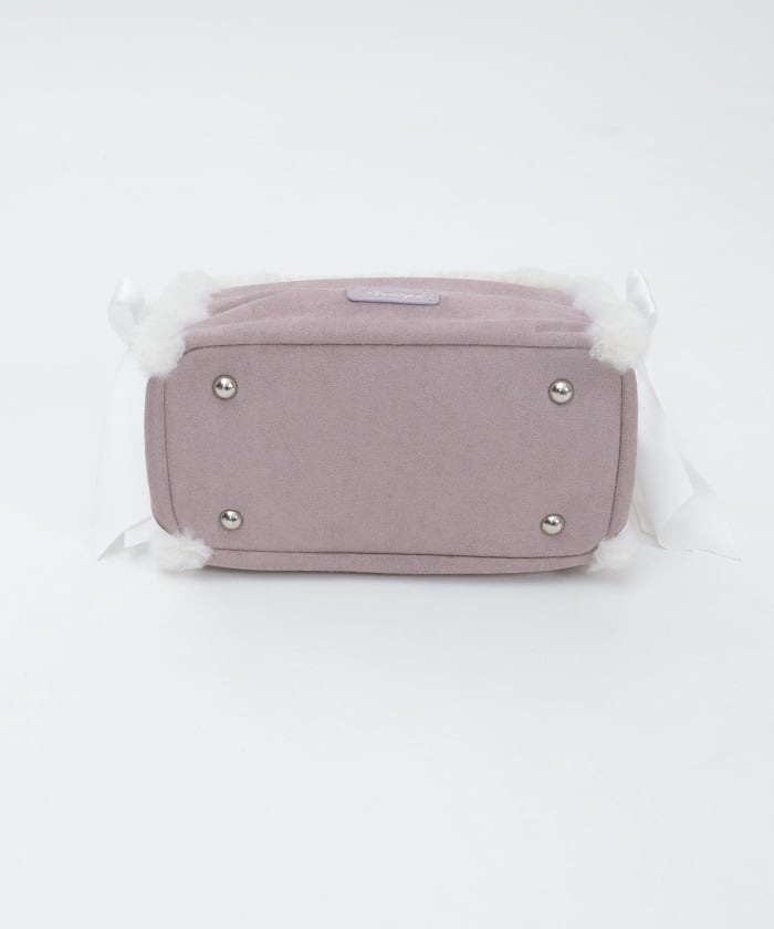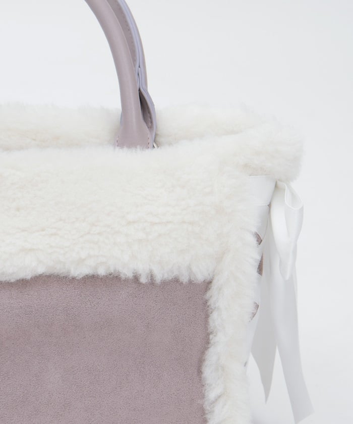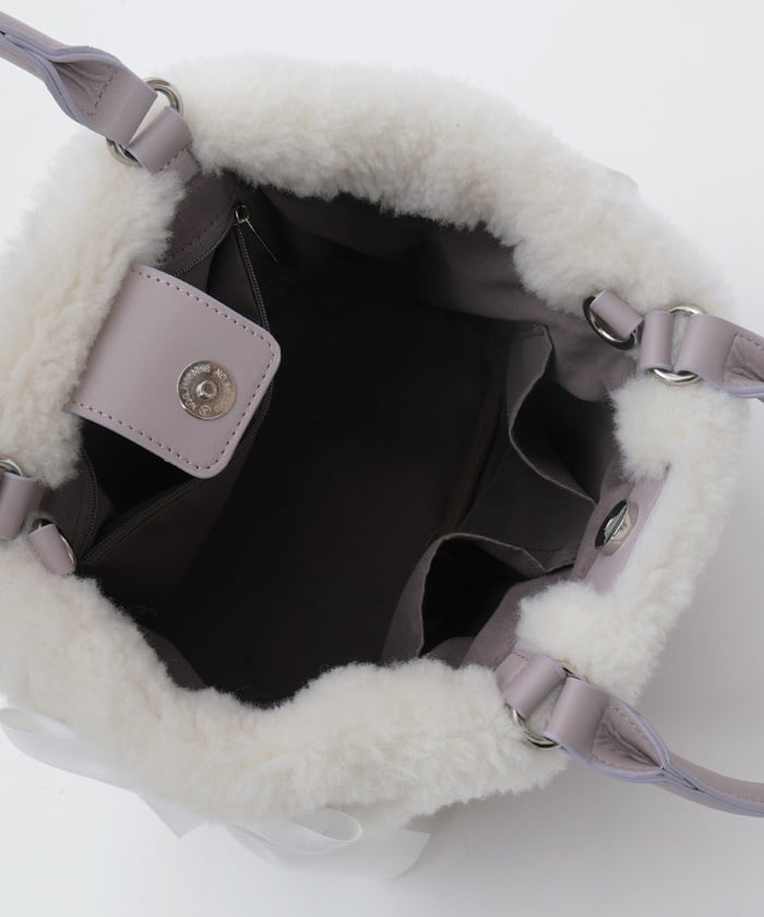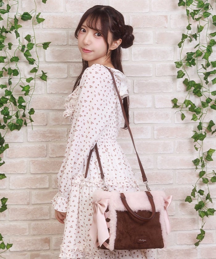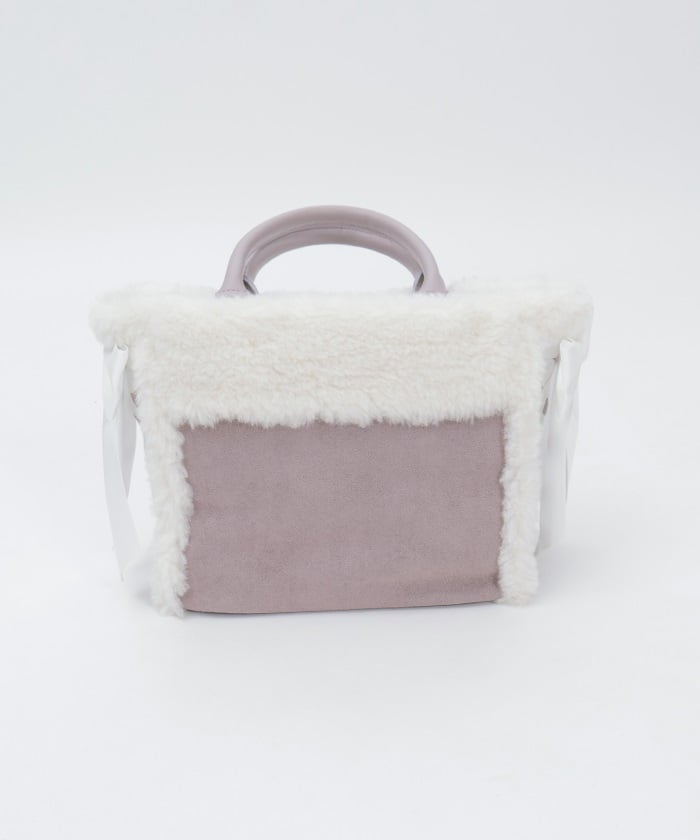 This bag features fluffy bicolor fur and lace-up ribbons on both sides.