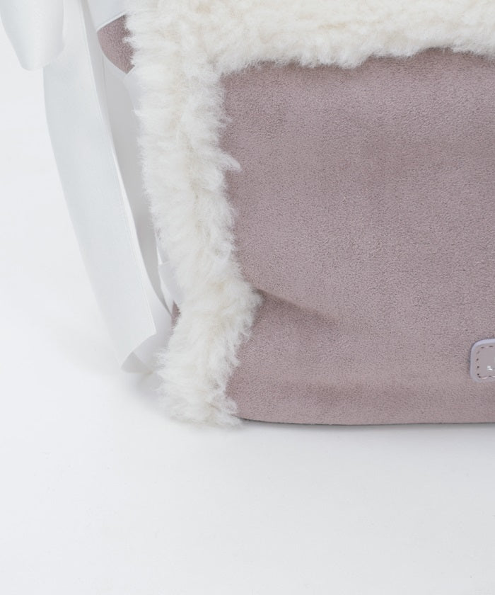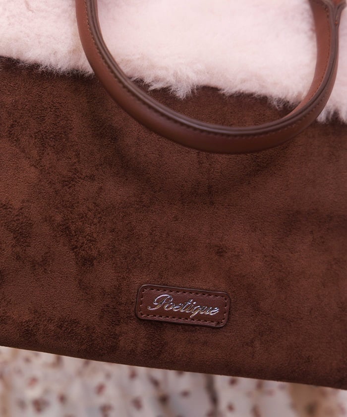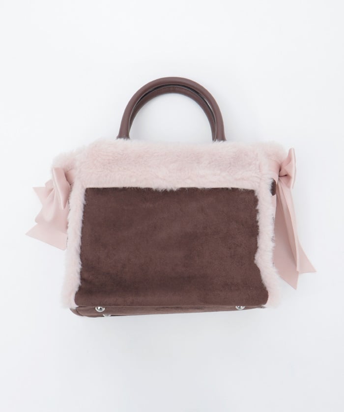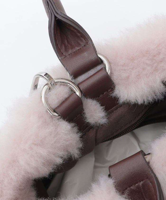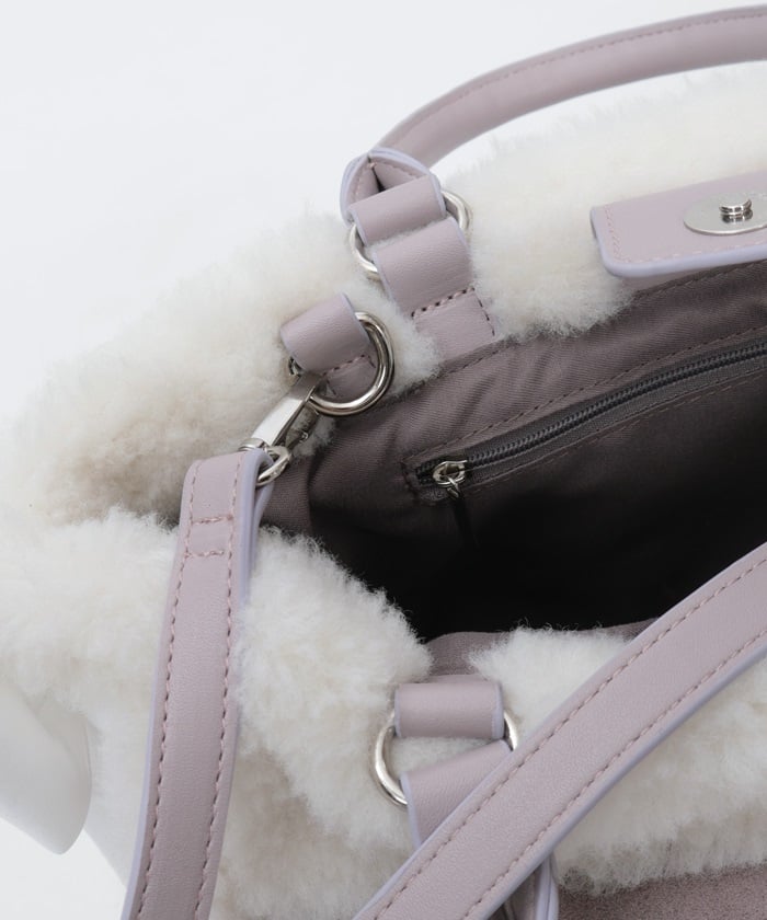 A bicolor bag with a girly sheepskin-like texture.