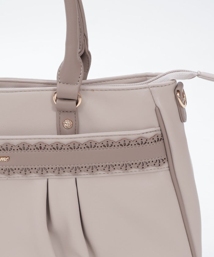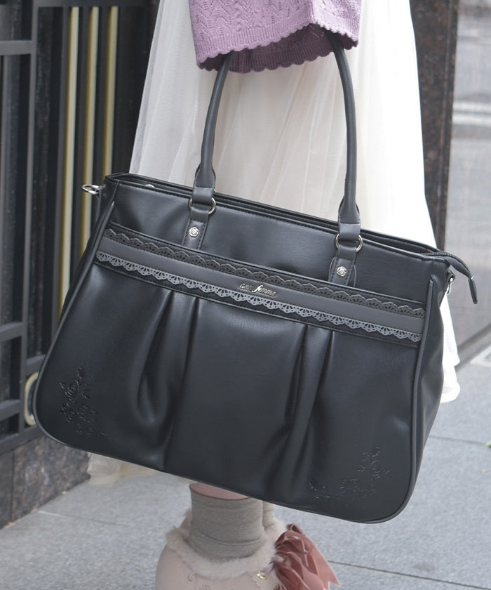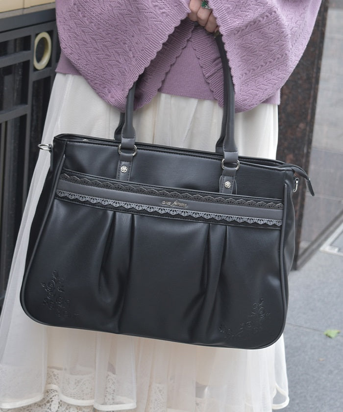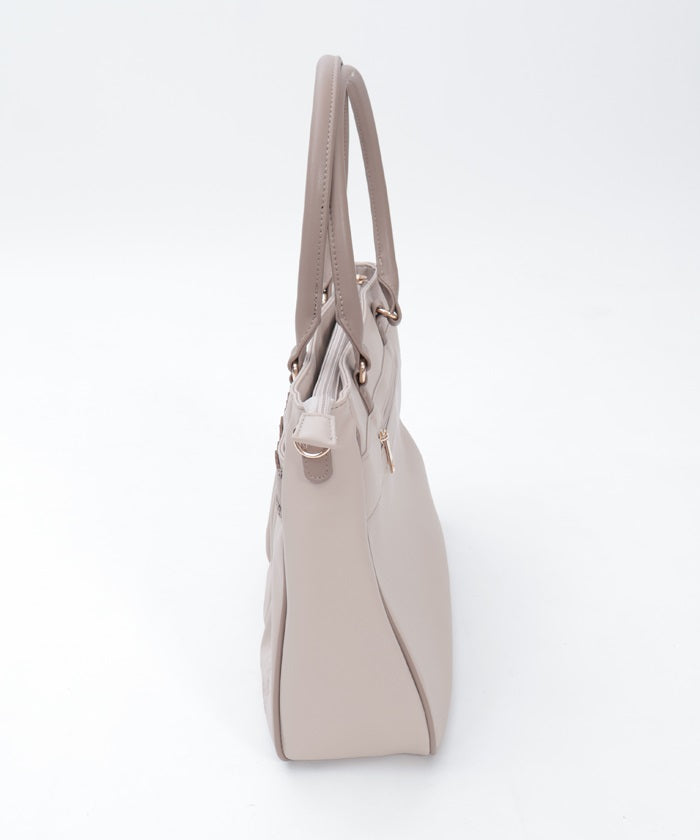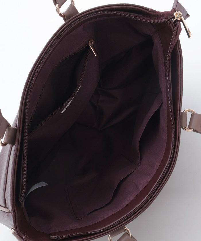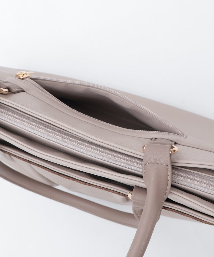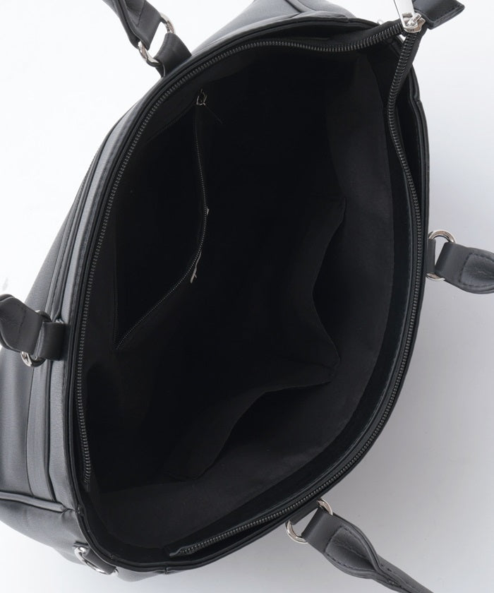 The interior is equipped with multiple inner pockets and a wide gusset, making it easy to store A4 files and 500ml PET bottles.