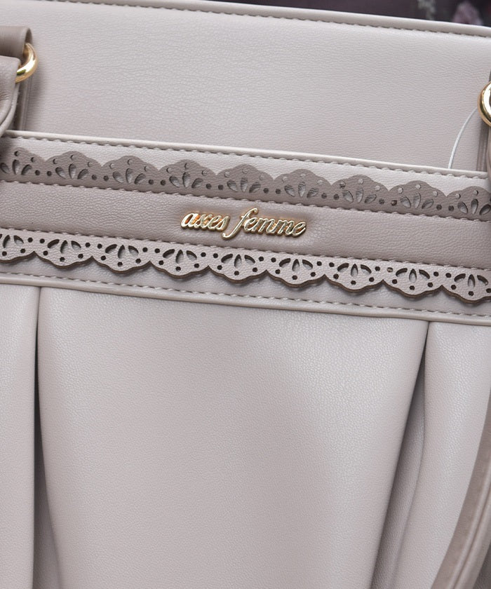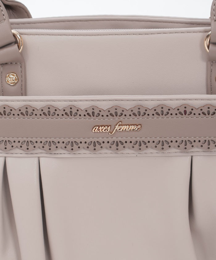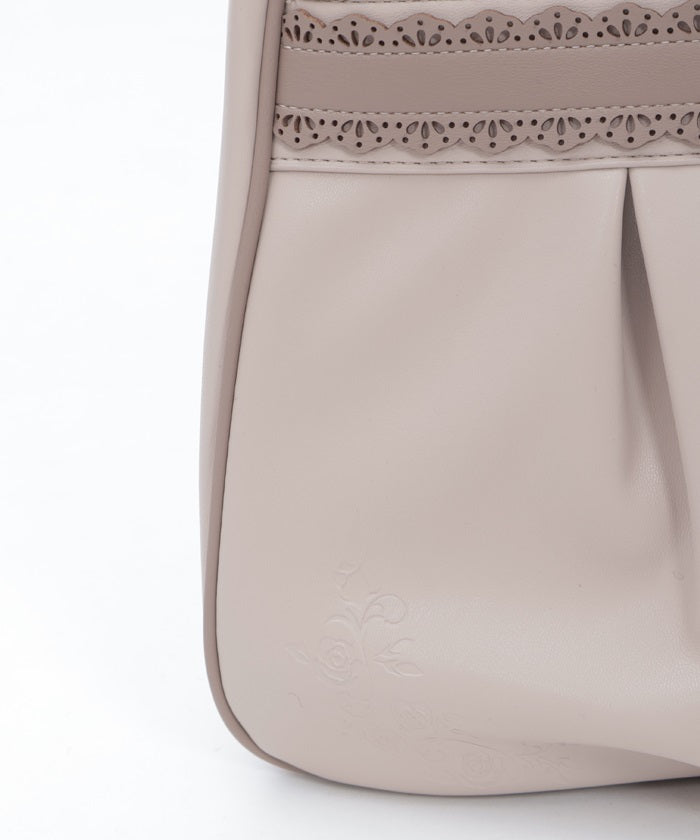 The elegant design features tucks for a three-dimensional effect and delicate cutwork scallops.