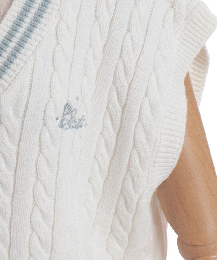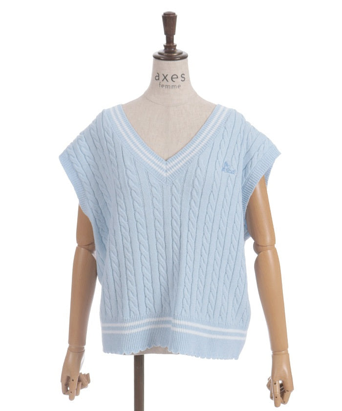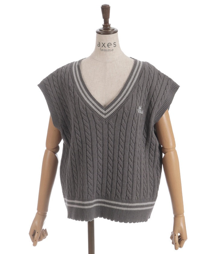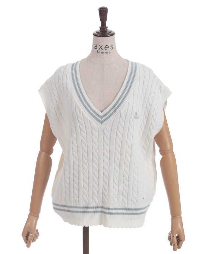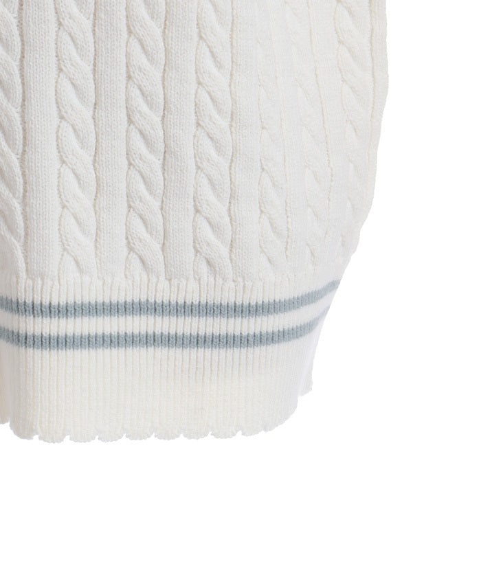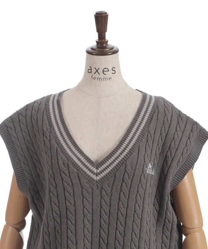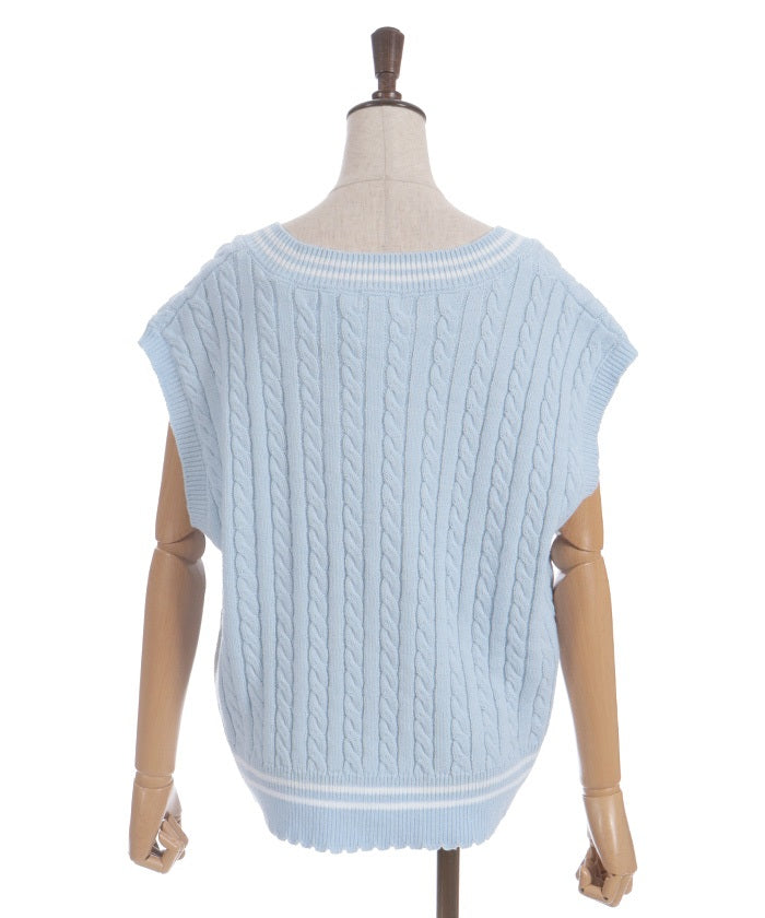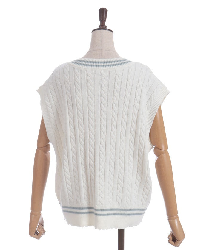 This cardigan knit vest features eye-catching color-coordinated stripes.