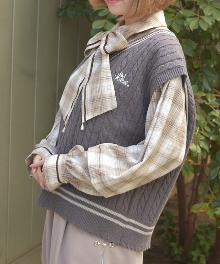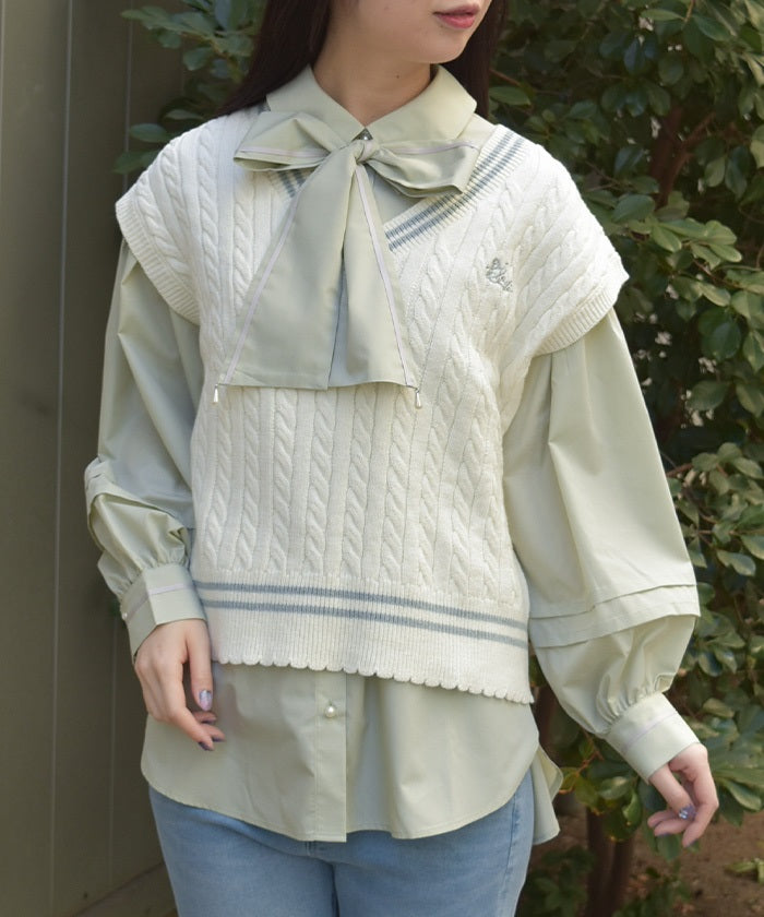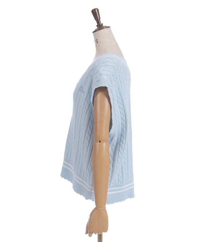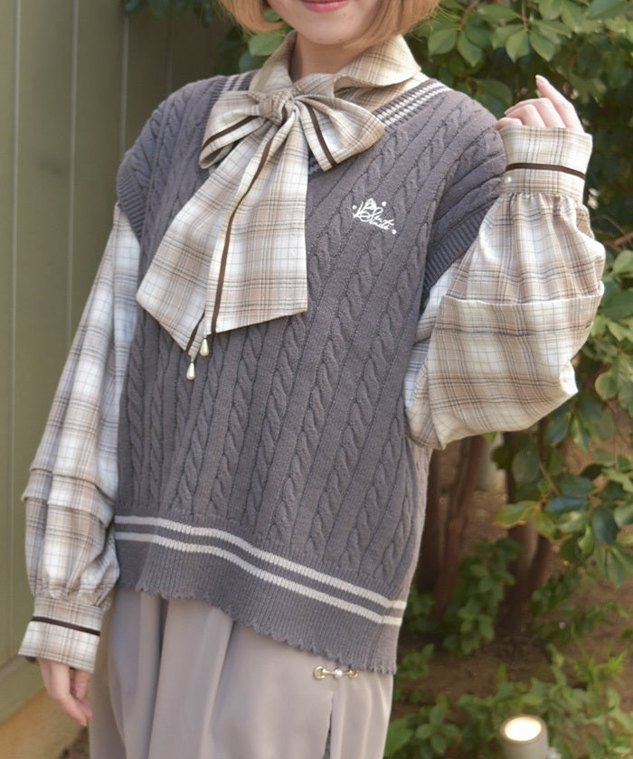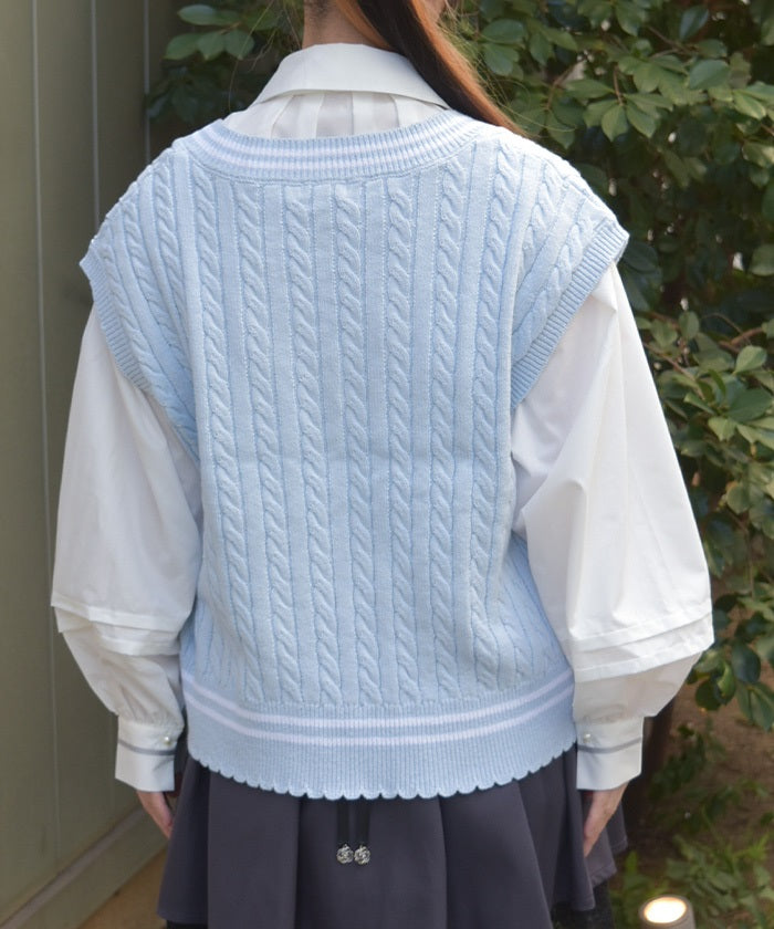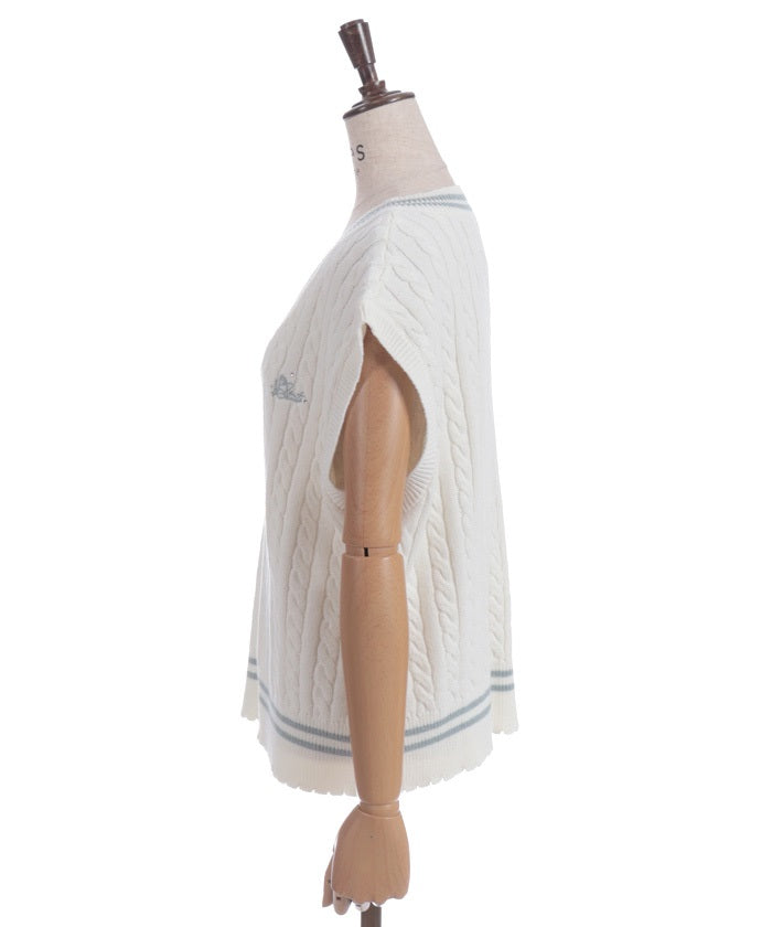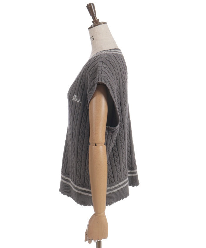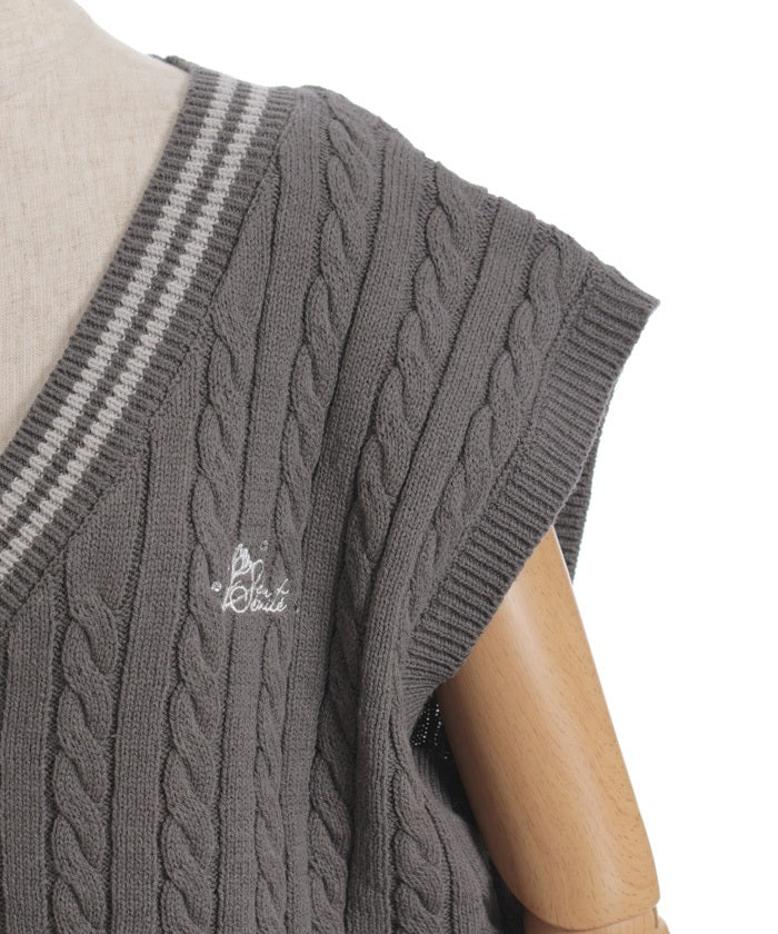 This cardigan knit vest features eye-catching color-coordinated stripes.
