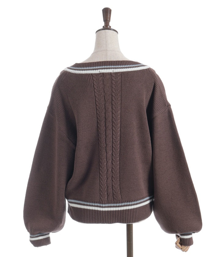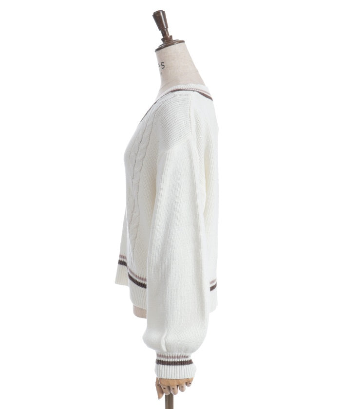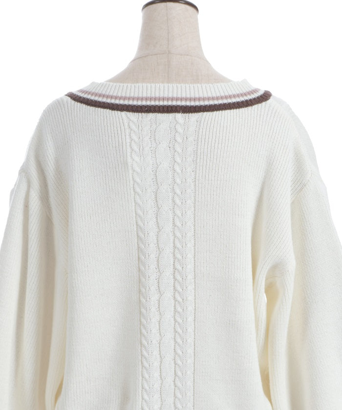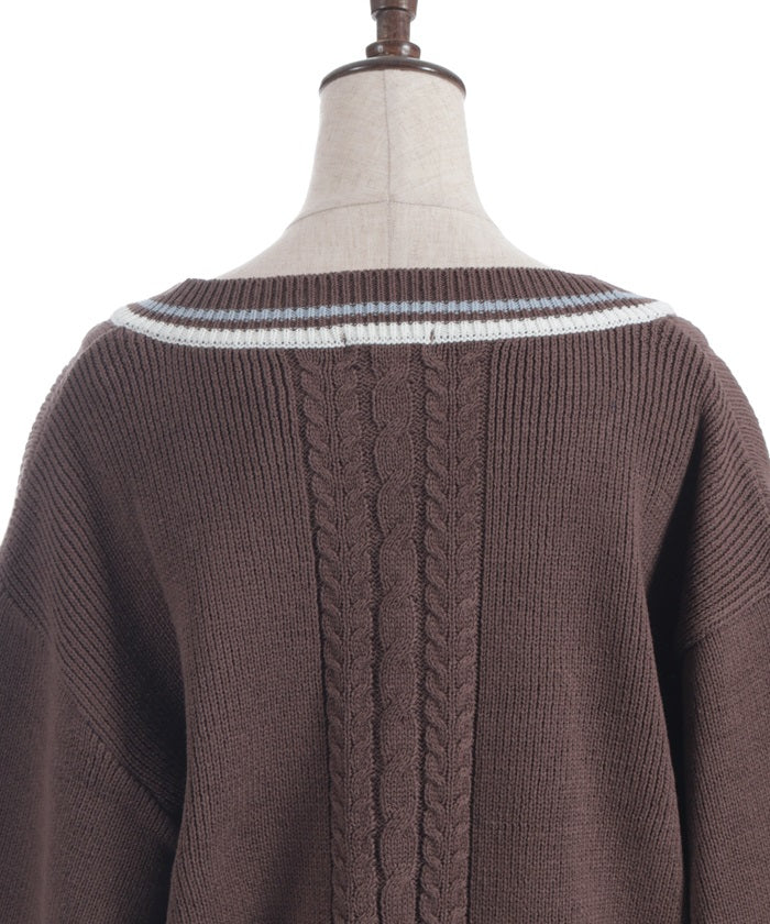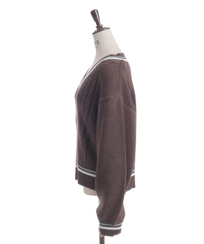 This Cardigan knit pullover features eye-catching color-coordinated lines.