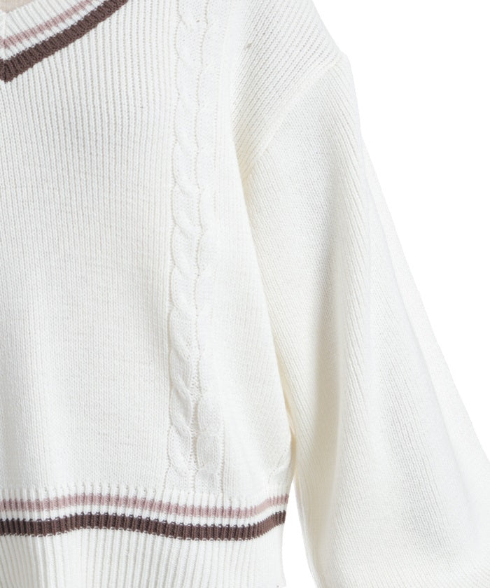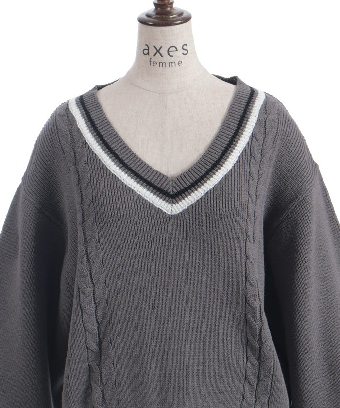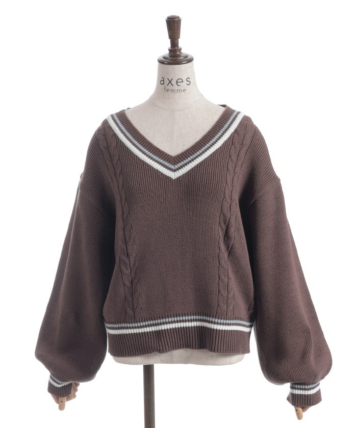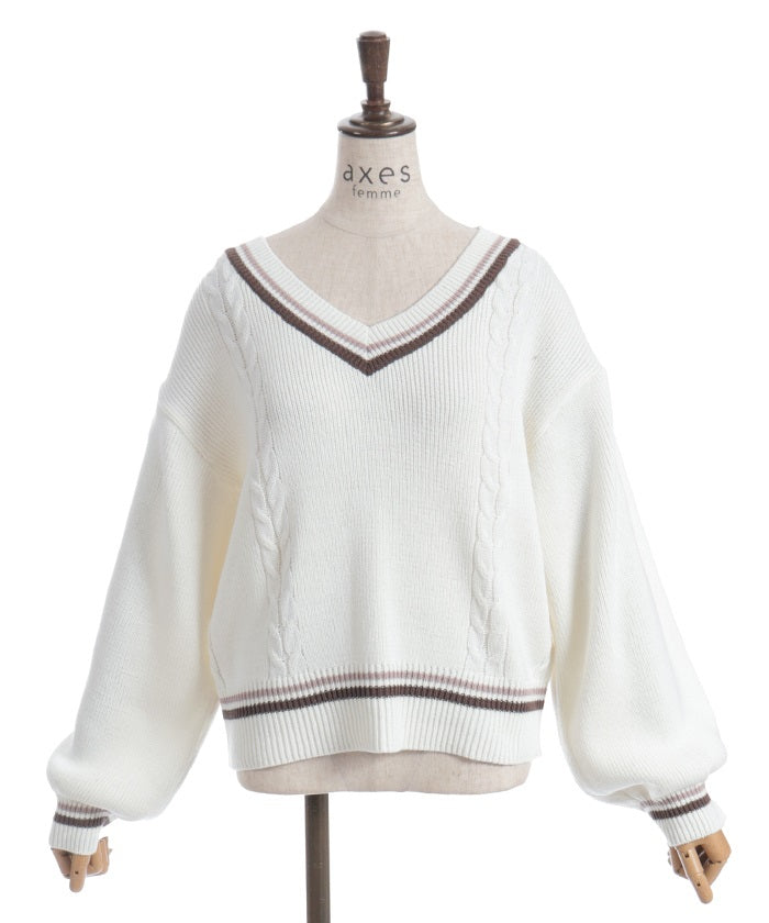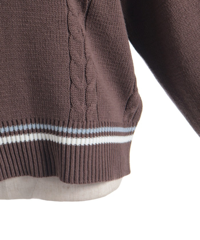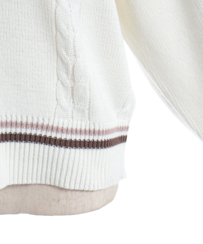 This Cardigan knit pullover features eye-catching color-coordinated lines.