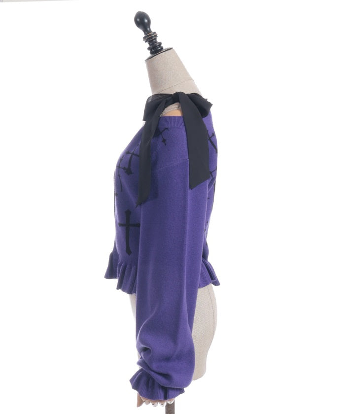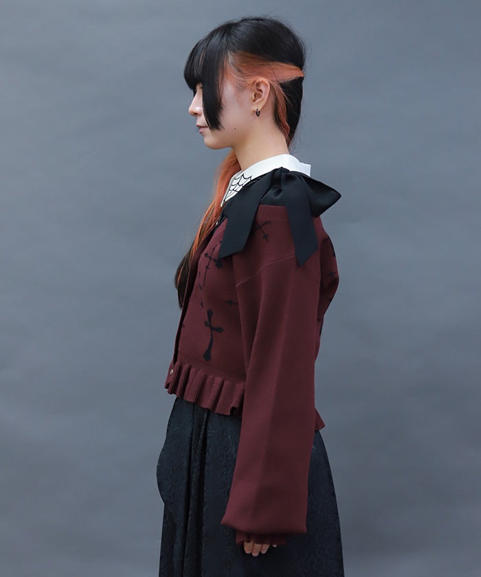 A knit cardigan with an eye-catching cross-patterned jacquard weave.