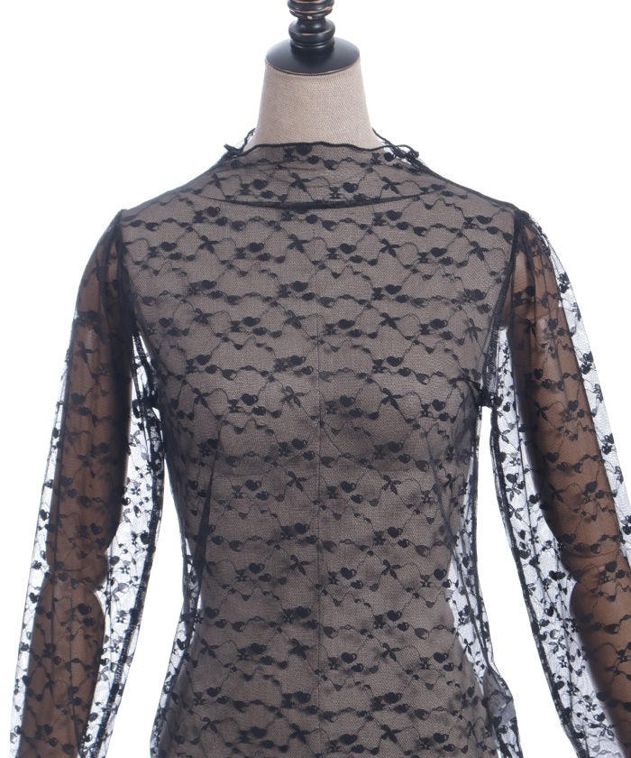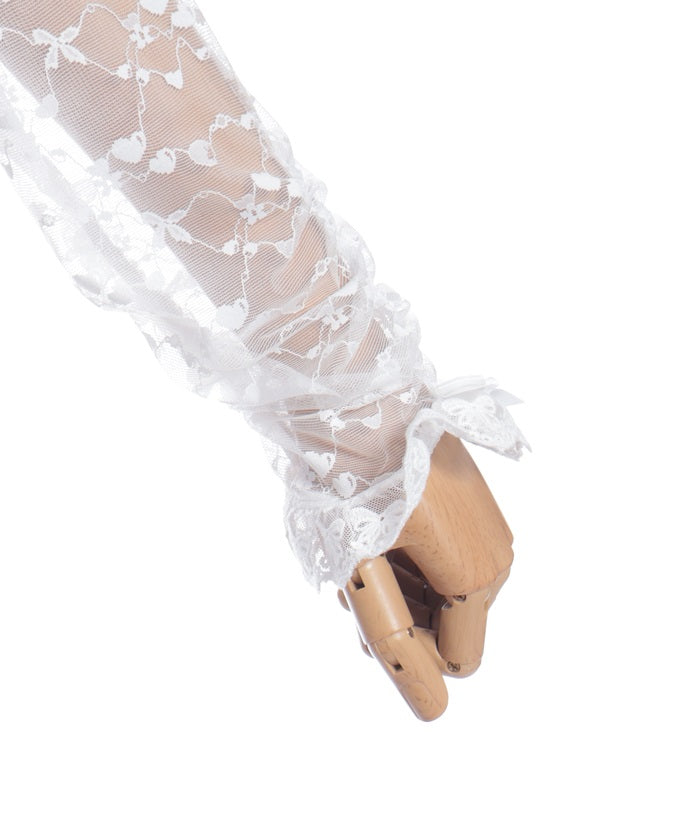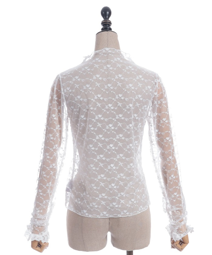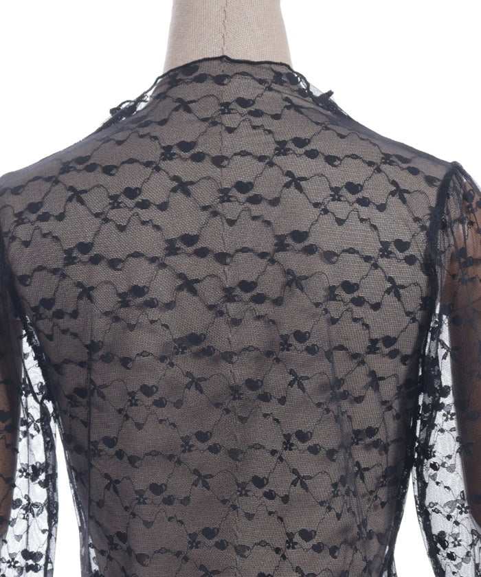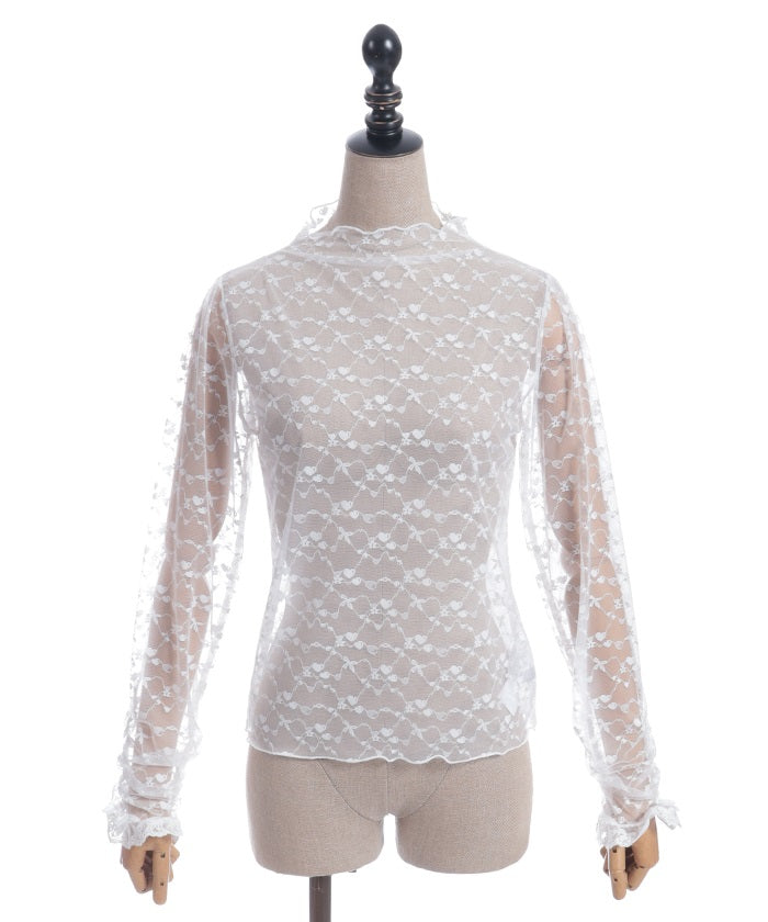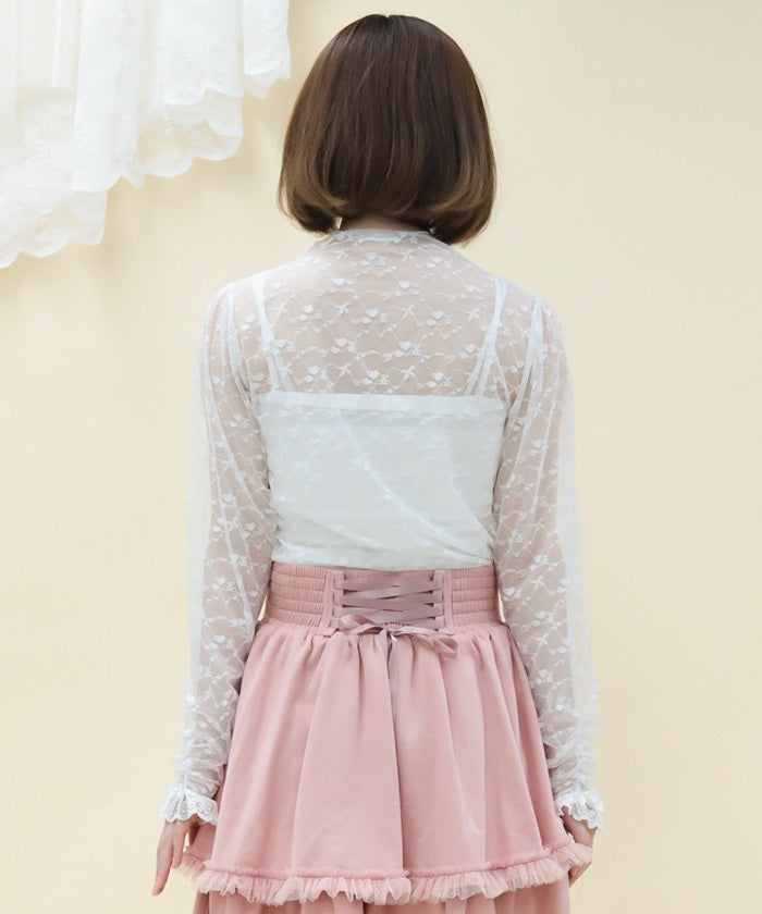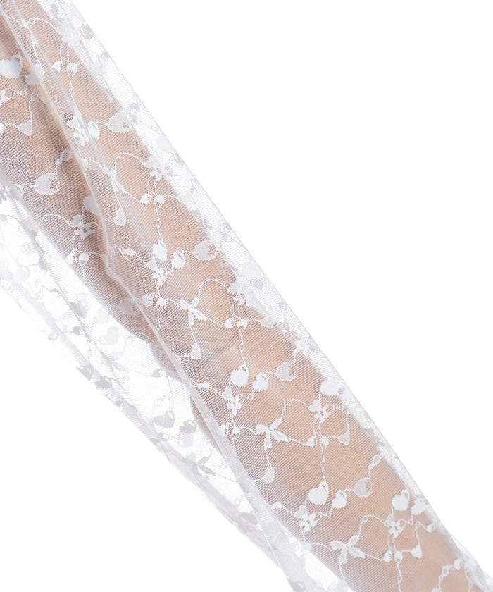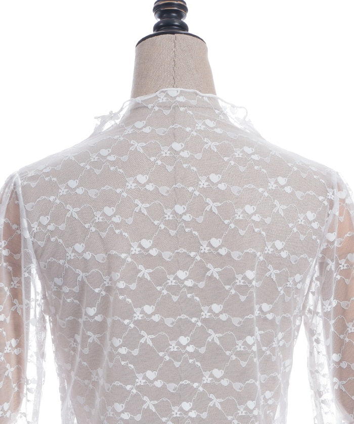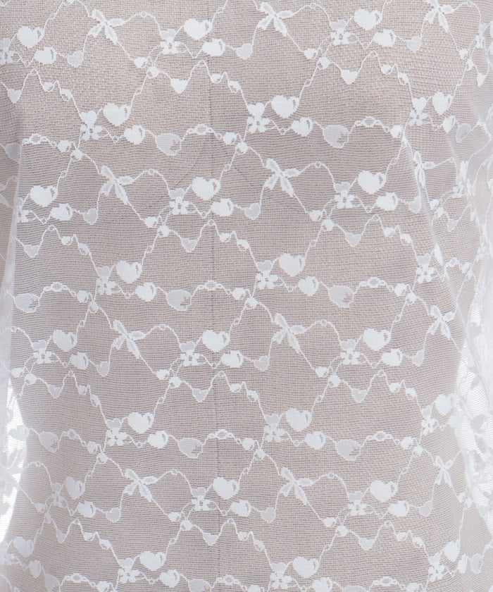 Sheer innerwear featuring heart and ribbon patterned tulle lace.