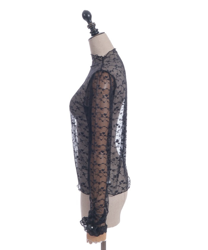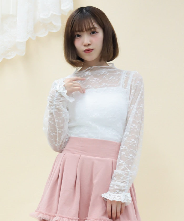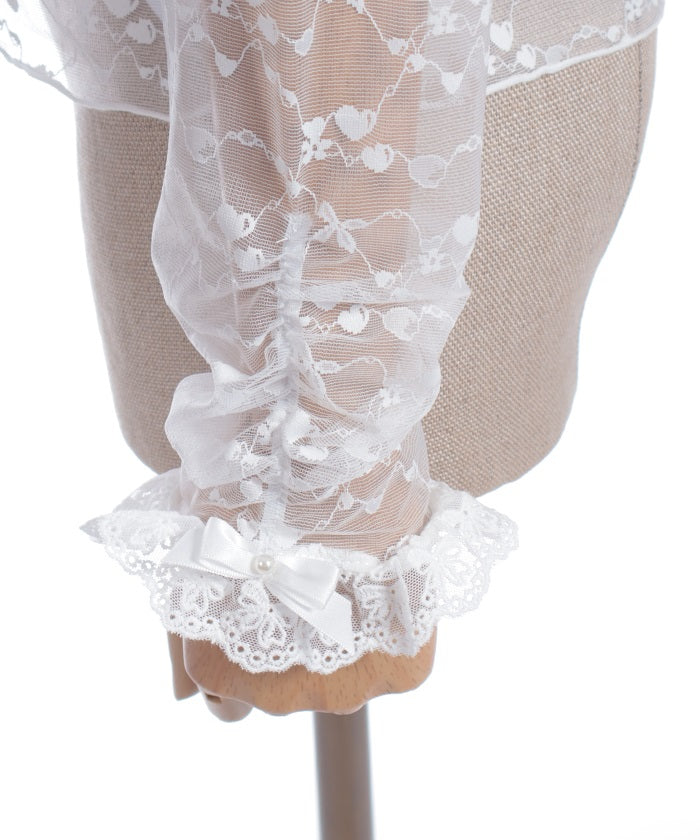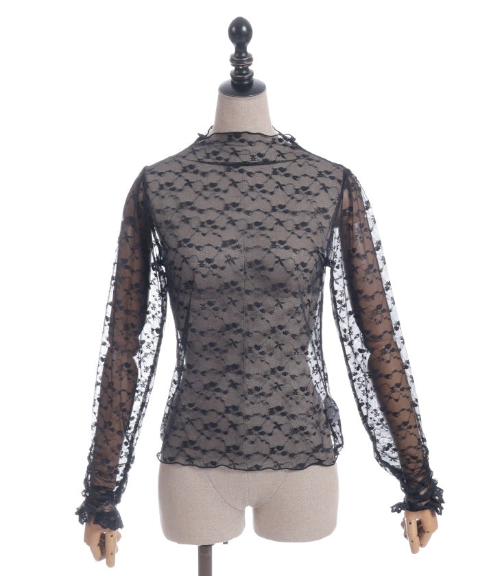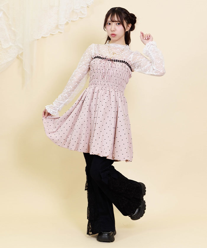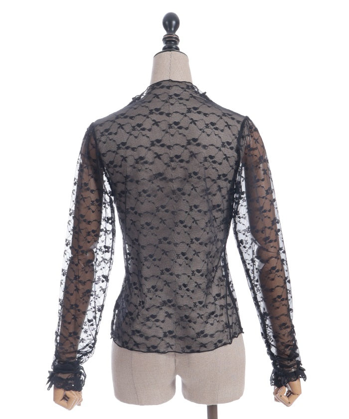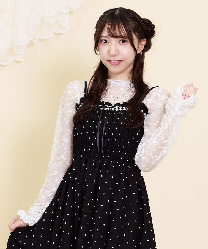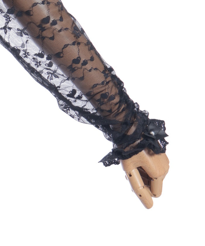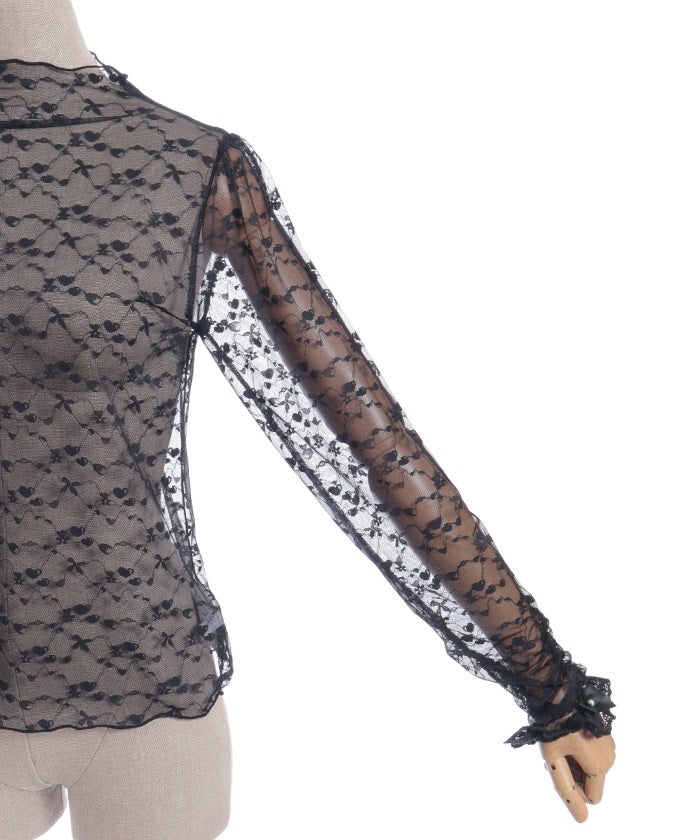 Sheer innerwear featuring heart and ribbon patterned tulle lace.