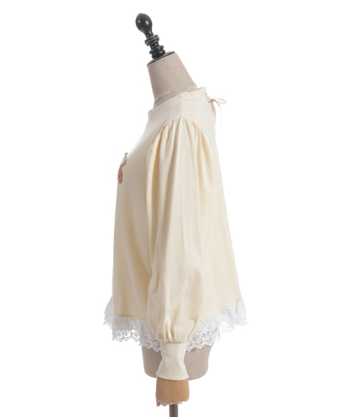 A long-sleeved T-shirt featuring an adorable bear embroidery.