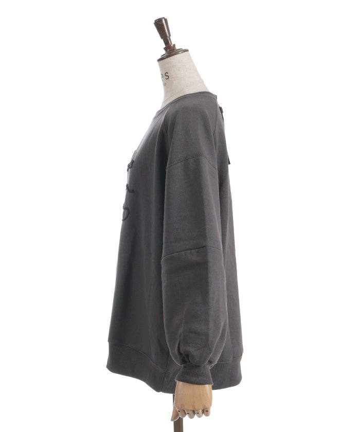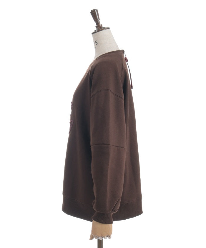 The back zip design features grosgrain ribbon in the same color as the embroidery.