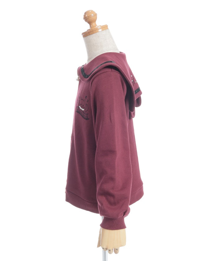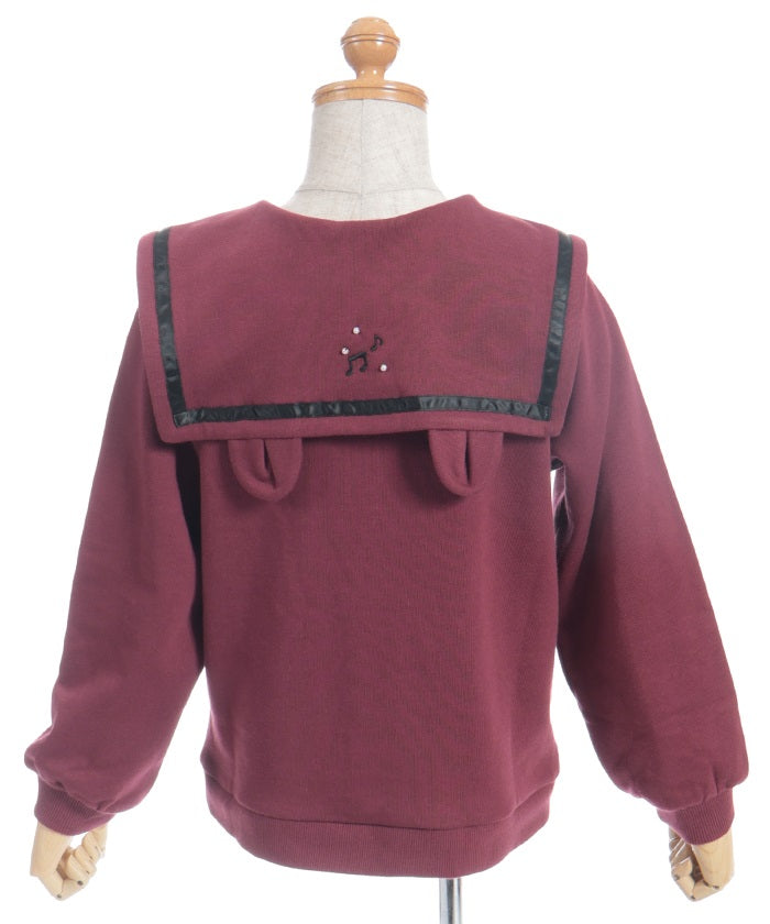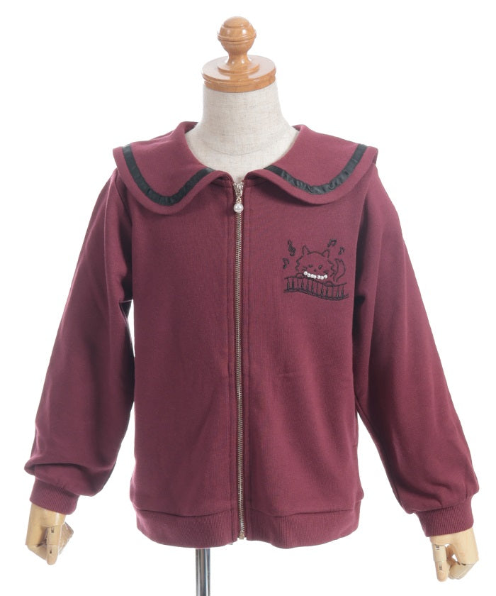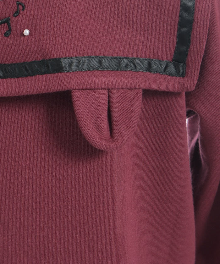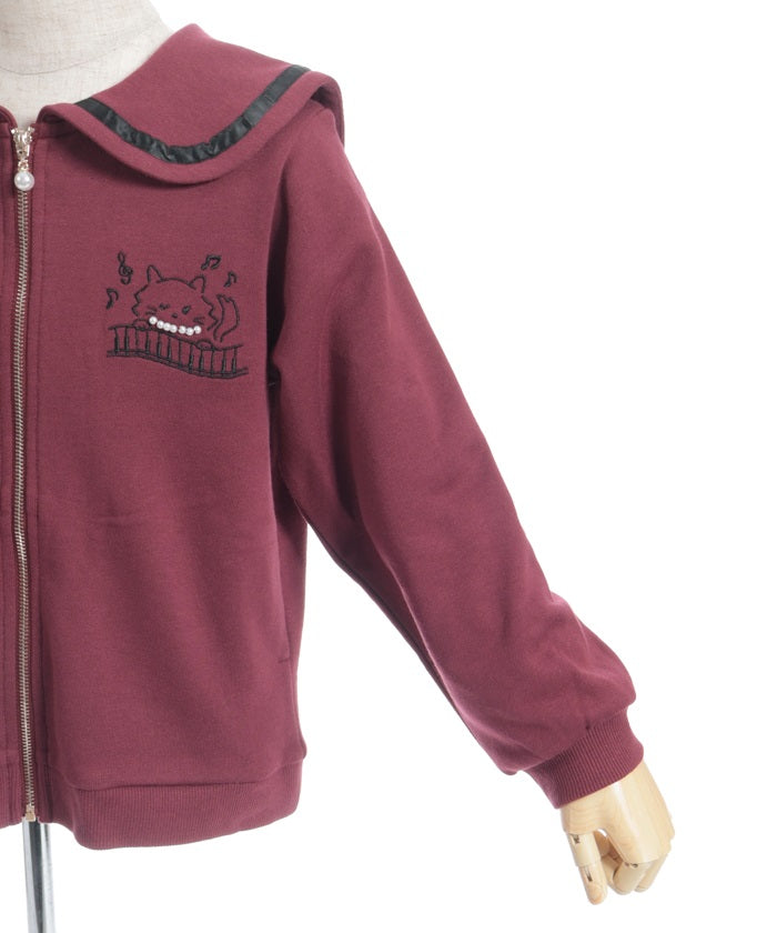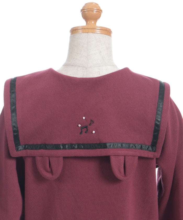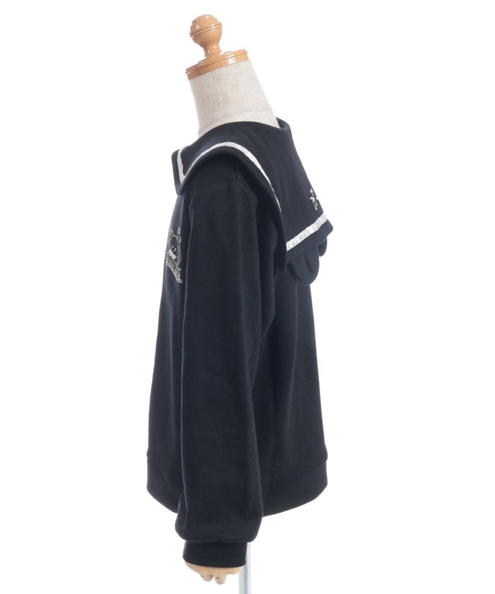 The oversized sailor collar with black lines creates a slightly classic look. The embroidery on the chest reveals a story of a cat playing the piano. It's packed with features that will make you want to wear it every day.